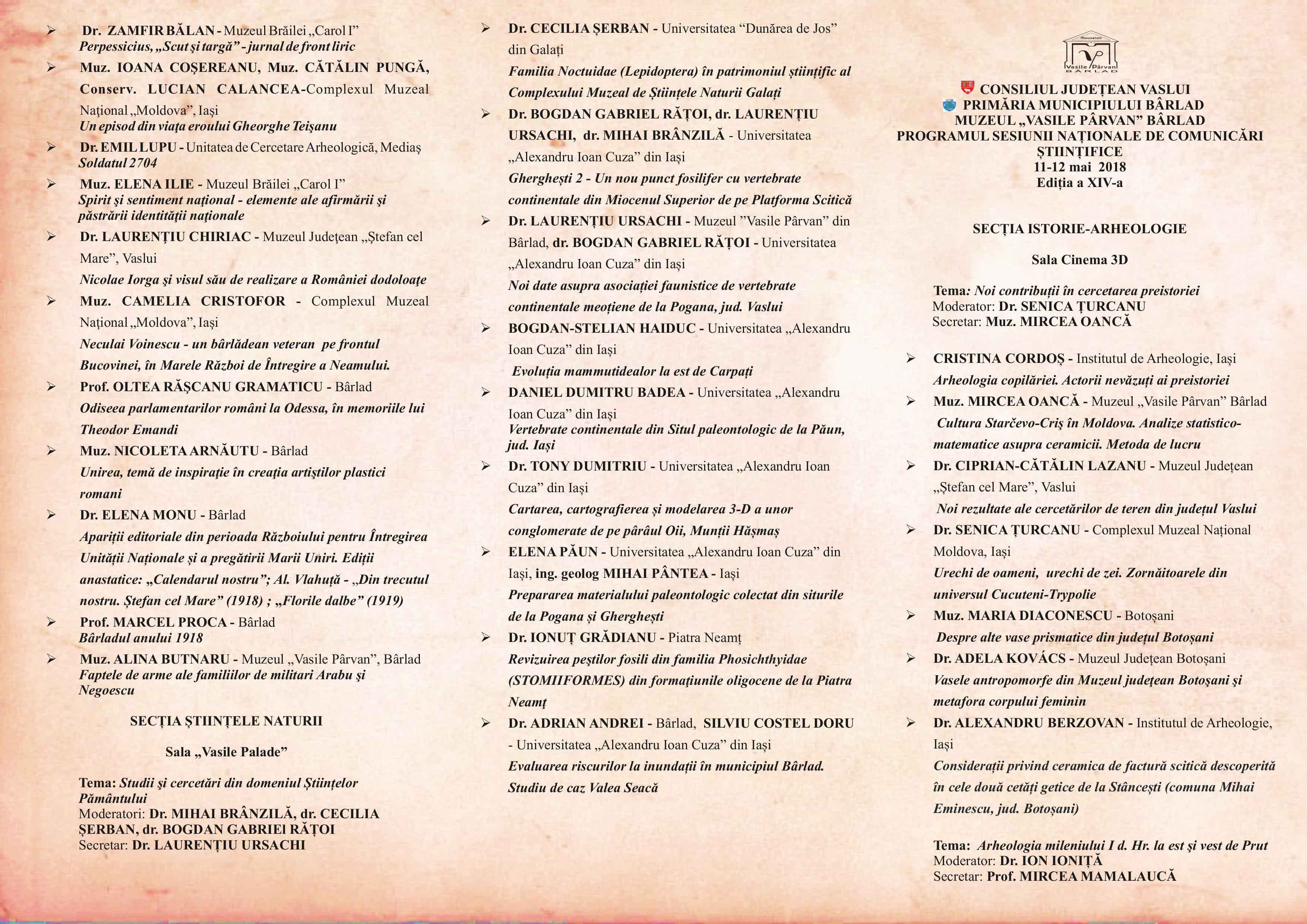 Muzeul „Vasile Pârvan” deschide sărbătoarea, așteptată și îndrăgită de bârlădeni, prin organizarea celei de a XIV-a ediții a Sesiunii Naționale de Comunicări Științifice. Timp de două zile (11-12 mai), specialiștii din țară și din Republica Moldova prezintă și dezbat problematici legate de preocupările și realizările din domeniile lor de cercetare. [youtube height=”HEIGHT” width=”WIDTH”]https://www.youtube.com/watch?v=YwXzG1k6zI0[/youtube]