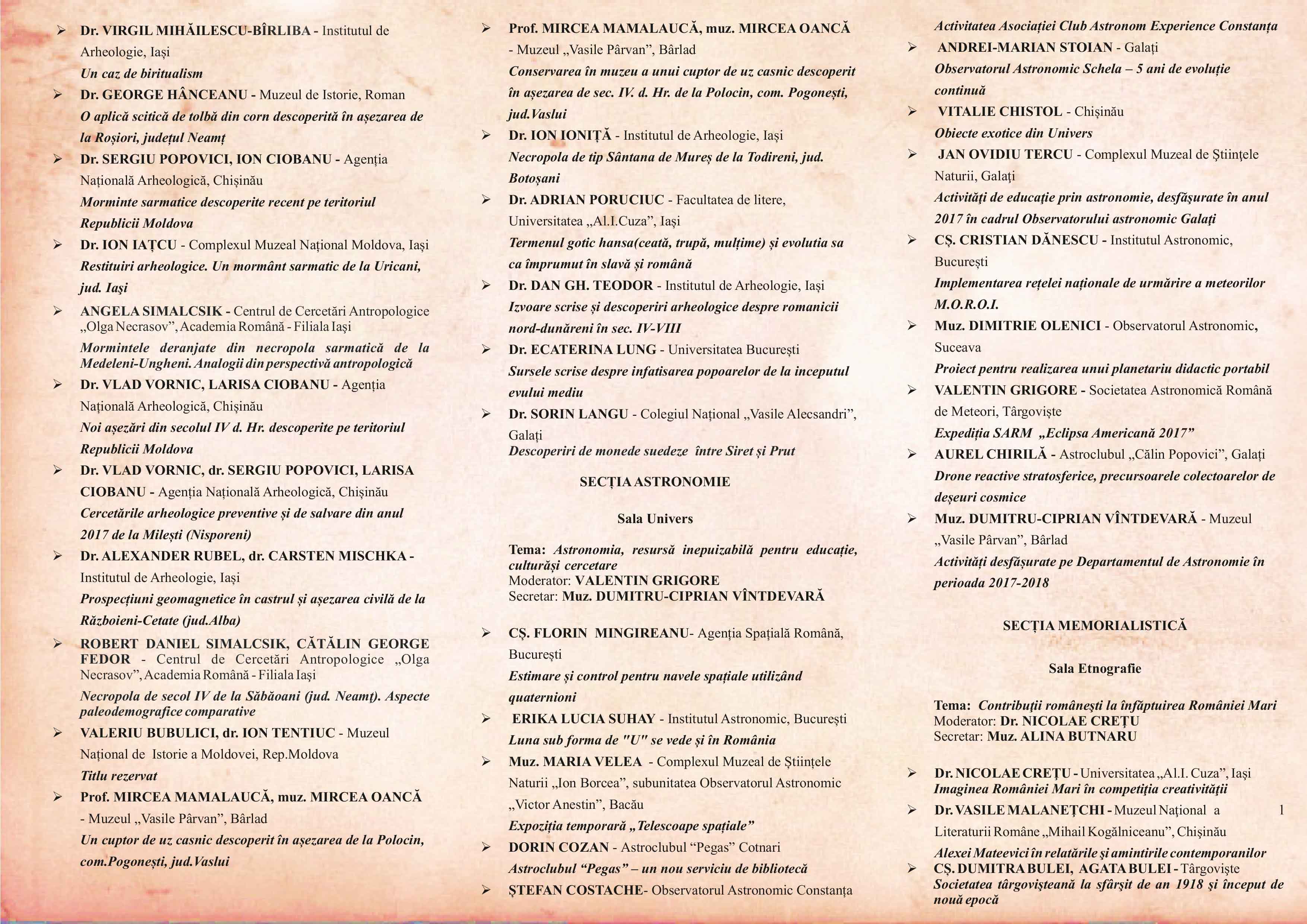 „Departamentul astronomie” propune tema Astronomia resursă inepuizabilă pentru educație, cultură și cerc.