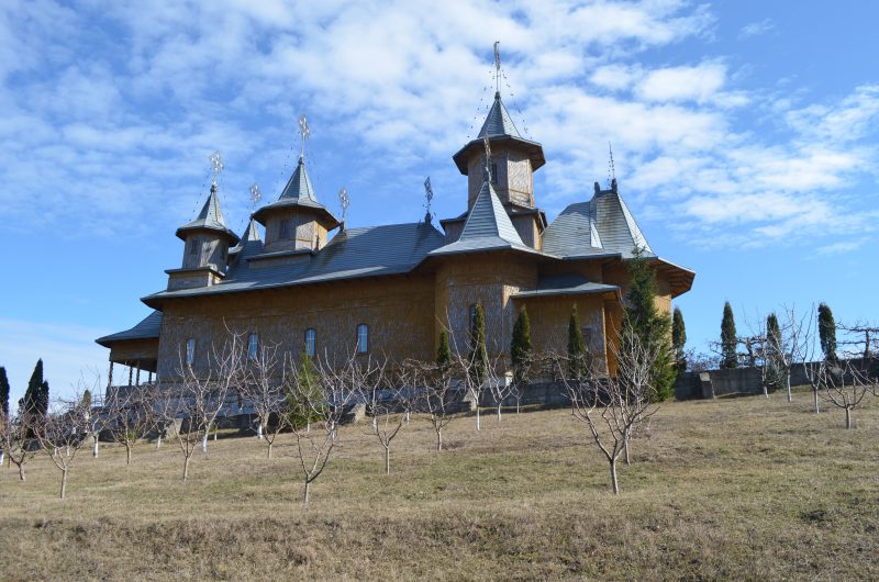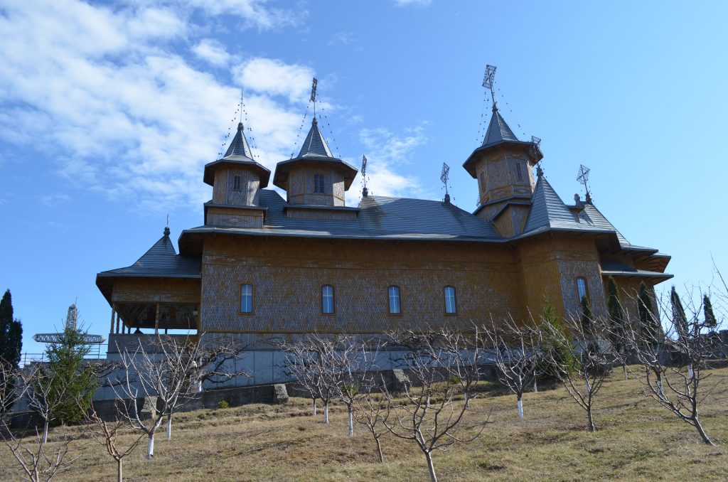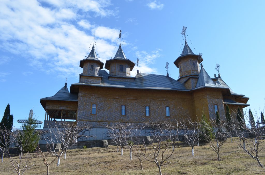 Inițial[1], erau amenajate câteva chilii în casa[2] filozofului Mihail Ralea… Paraclisul[3] a fost zidit între 1997-1998, biserica mare înălțându-se în perioada 1999-2004… Modernizările[4] lăcașului[5] ridicat în marginea pădurii „Dobrina” nu sunt detectabile decât după ce urci peste 100 de scări; fațade căptușite cu draniță, turle agățate de cerul albastru, perspectiva care te îmbie să arunci ochii de pe șosea (atunci când vii dinspre Iași, Crasna, Huși), toate acestea mi-au inspirat setul de fotografii cu și despre Mănăstirea „Schimbarea la Față”…