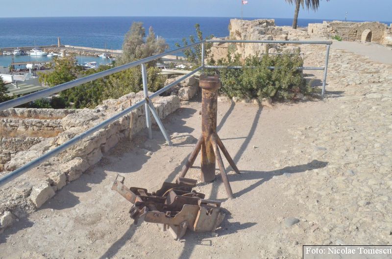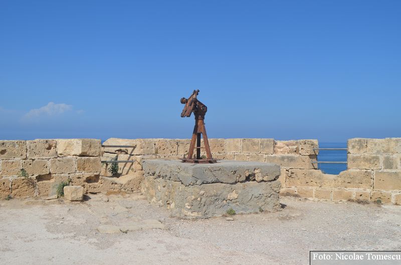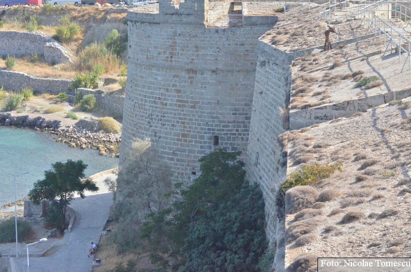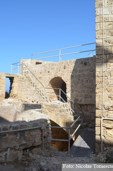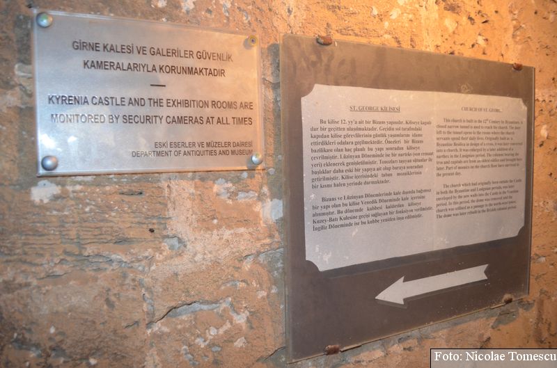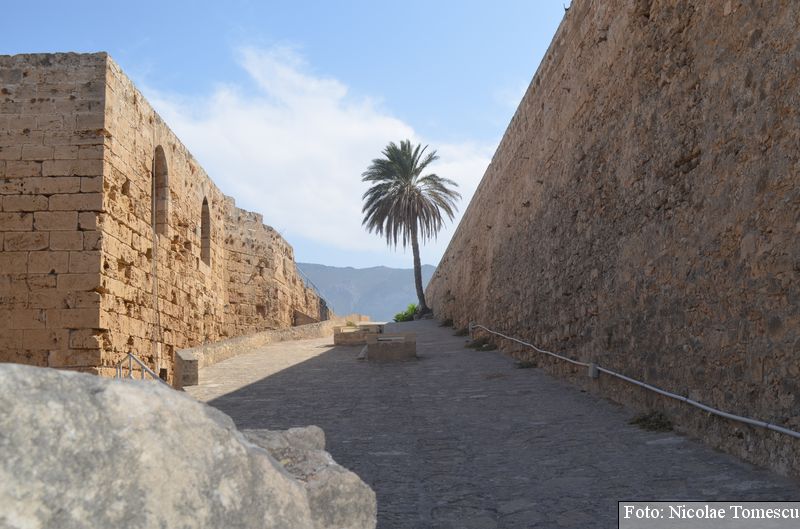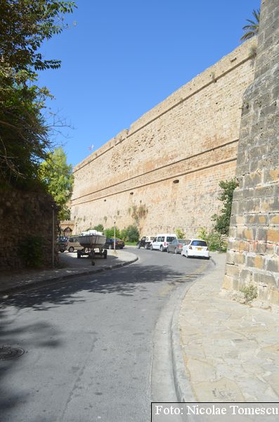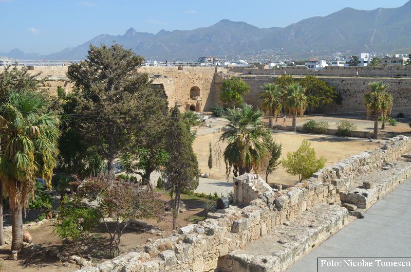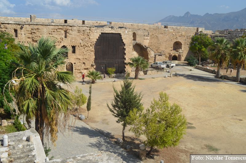 Castelul Kyrenia, spre exemplu, se află în vecinătatea vechiului port[4]. Urcăm trepte sau pante, coborîm, trecem prin culoare boltite pline de fascicule luminoase, intrăm în încăperi cu mirosul înghețat al întunericului, ne jucăm pașii pe ziduri pentru a cuprinde portul, digul si întinderea nesfârșită a mării, pătrundem în cele trei perioade importante ale existenței fortului: bizantină (330-1192), cruciată (1192-1472) și venețiană (1472-1570). Uneori, nevoia de exactitate poate fi o dovadă de mărginire a spiritului. Nu cunoaștem anul construcției, se presupune doar că a fost ridicat de bizantini în scopuri defensive. Prima atestare istorică a castelului datează din anul 1191, englezul Richard Inimă de Leu și a treia cruciadă fiind simbolurile care înlesnesc înțelegerea. În posesia Cavalerilor Templieri, apoi a lui Guy de Lusignan[5], micul castel cu rol militar a fost extins; i s-au adăugat turnuri pătrate și în formă de potcoavă, o nouă intrare, locuri de tragere pentru arcași[6], deopotrivă temnițe. Cu ocazia acestor extinderi, zidurile au îmbrățișat Biserica Sfântul Gheorghe, construită de bizantini în secolele XI-XII. Iar cu respectivele fortificații, deși asediat de mai multe ori, castelul se mândrea că este imposibil de cucerit; dar colosul de piatră, cu ziduri masive, cu șanț de apărare[7], cu atâtea puncte de observație și tragere s-a predat turcilor (în 1570). Camerele regale, încăperile gărzilor și închisoarea din perioada Lusignană se găsesc la nord și est; în sud s-au înstăpânit fortificațiile din perioada bizantină. Putem urca treptele până la apartamentele regale și capelă. Subsolul este plin de urmele temnițe, depozitelor și pulberăriilor, iar, în curtea interioară, una dintre clădiri adăpostește Muzeul naufragiului[8].