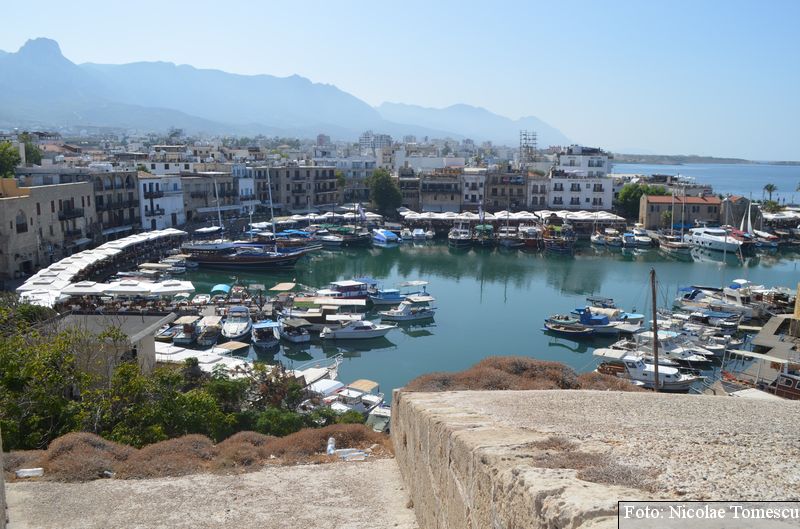 Cel mai faimos este fortul Kyrenia (turcii îi spun Girne), fondat de vechii fenicieni, devenit în epoca cruciadelor, reședința preferată a lui Richard Inimă de Leu. Da, am ales partea nordică a Ciprului, adevărat muzeu etnografic în aer liber. Nu am căutat locul de naștere al Afroditei, mormintele regilor și mozaicurile mitologice din Paphos; cunoscători ai bisericilor ortodoxe grecești, am stabilit ca prioritate catedralele și moscheele împrăștiate ca niște corăbii deasupra norilor, am admirat forturile masive, castelele și zidurile din Nicosia (Lefkoșa în limba turcă), Famagusta (turcii îi spun Gazimağusa)[3], Kyrenia – construite pentru a apăra orașele de incursiunile arabe. La Salamis, am admirat teatrul greco-roman săpat în calcar; goticul Abației Bellapais a primit comparația călătoriei unui erou aflat în căutarea stelei căzătoare, promisă fetei de care s-a îndrăgostit. Excursia din munții Besparmak ne-a ajutat să ajungem la castelul Sfântul Hillarion…