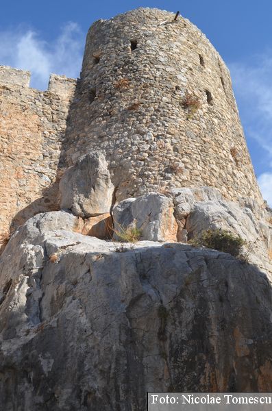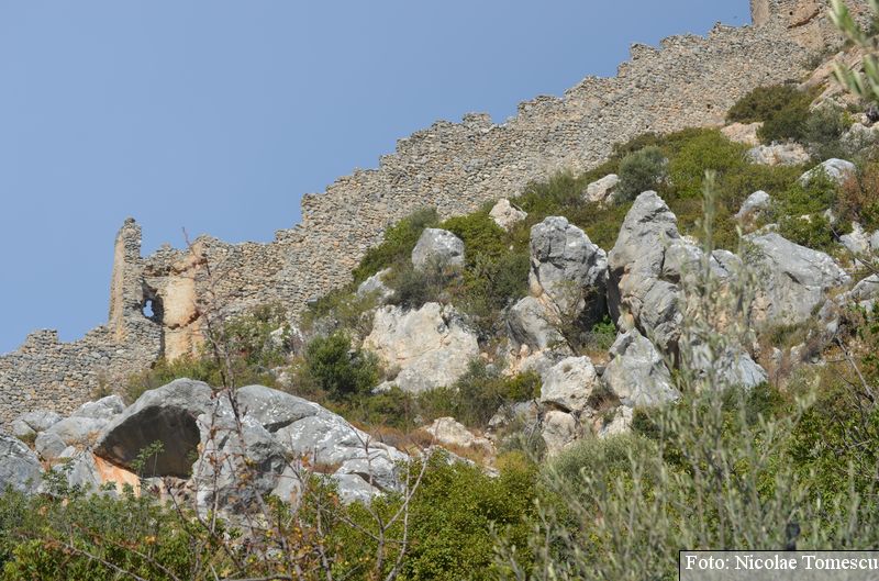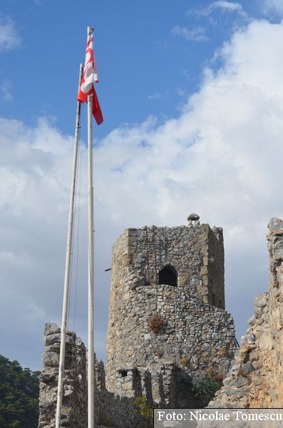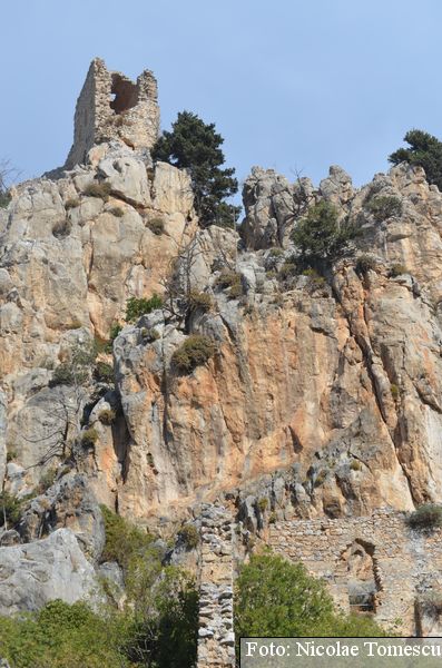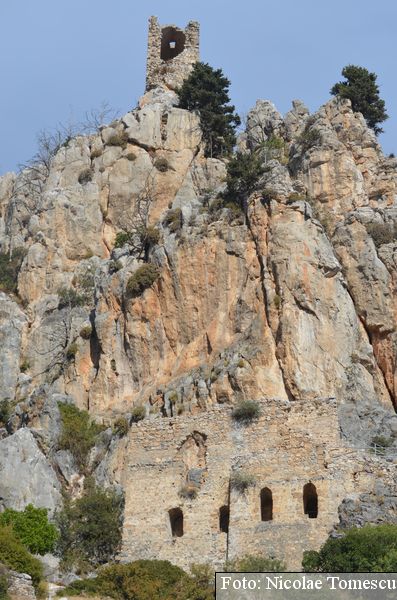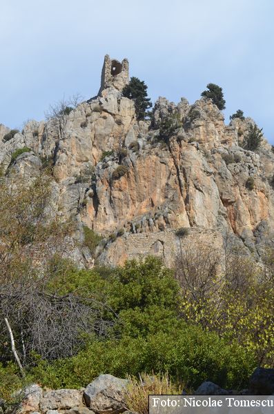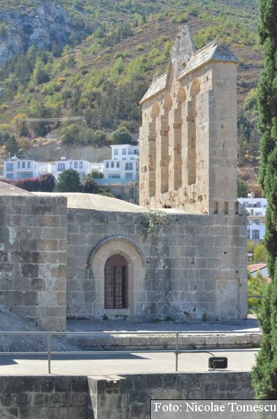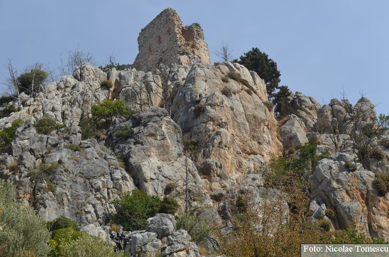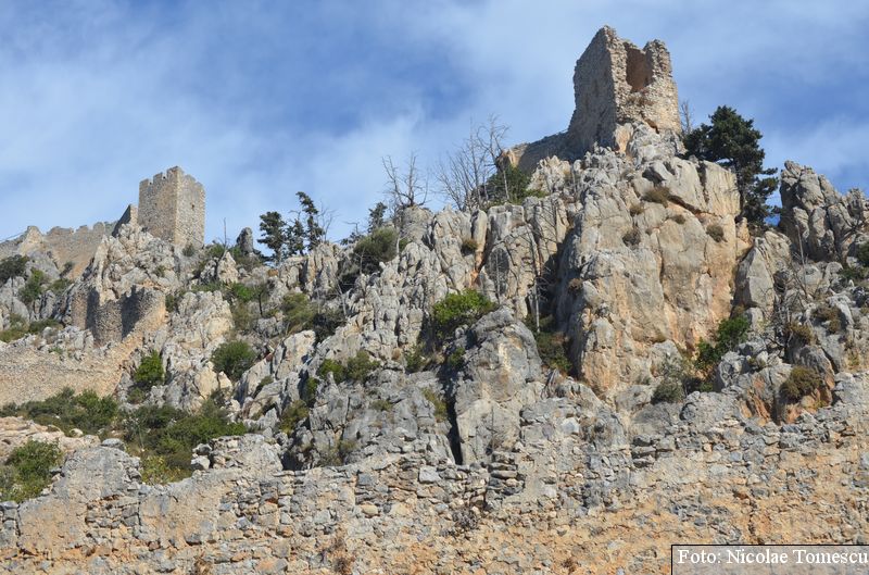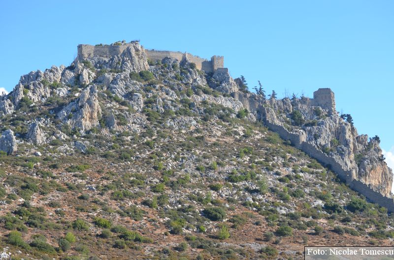 [11] Apărut în perioada bizantină, insemna gemeni – în greacă și aramaică. Bizantinii aveau să construiască o mănăstire (am întâlnit ruinele unei biserici) care a fost transformată în secolul IX, sub amenințarea arabilor (dinspre castel, bizantinii urmăreau vasele care se apropie de insulă). Folosit ca loc de refugiu al familiilor regale in timpuri tulburi, Lusignanii aveau să-l numească Le Château de Dieu d’Amour, interpretând numele grecesc al celor două vârfuri gemene și al legendei potrivit căreia ar fi fost locul unui vechi templu păgân, inchinat Afroditei.