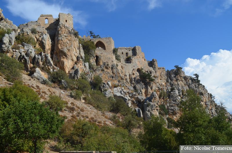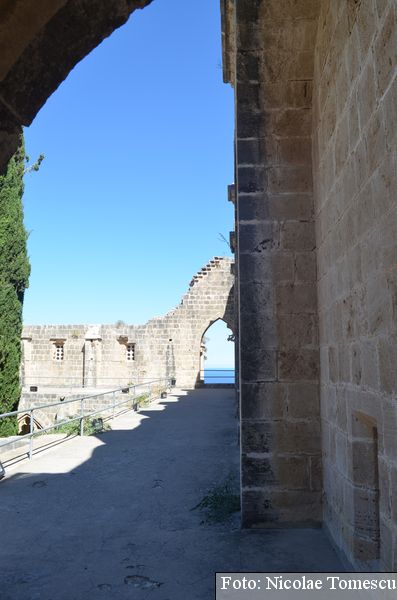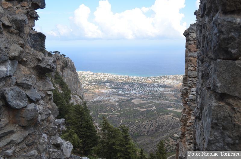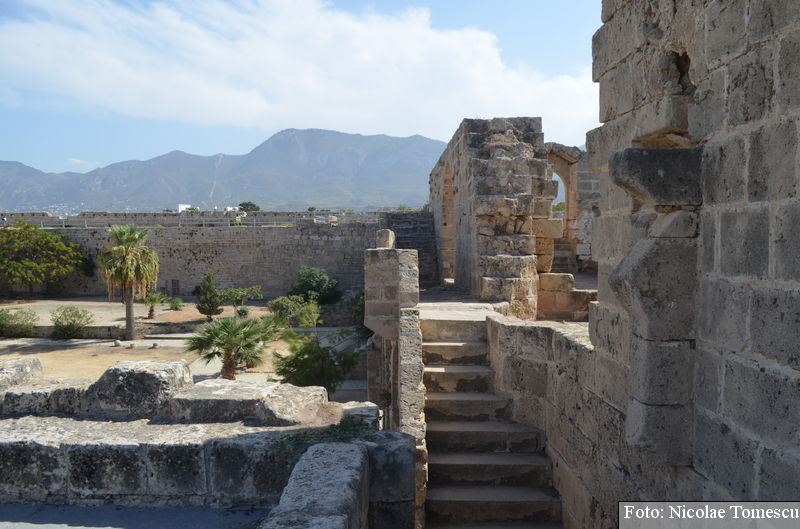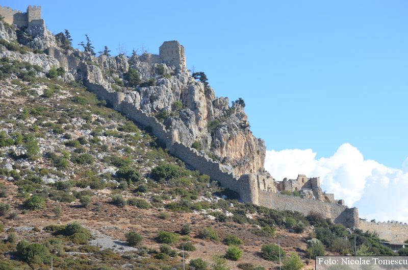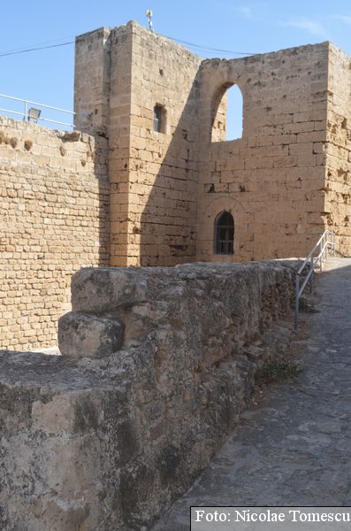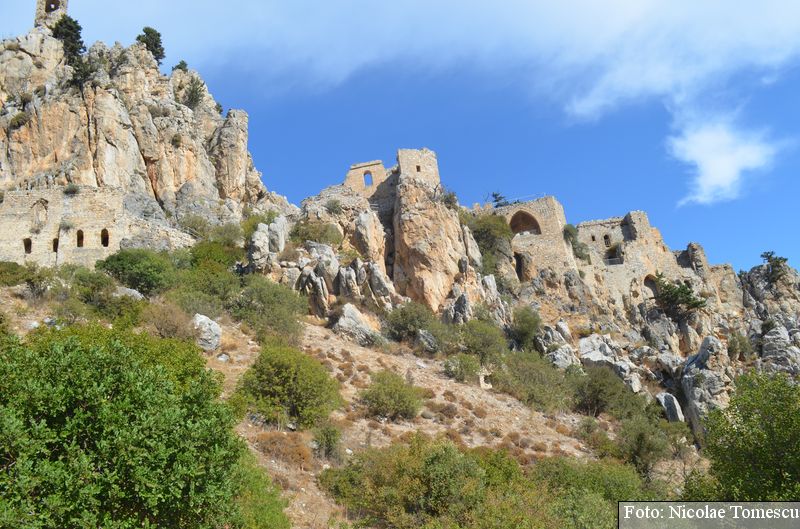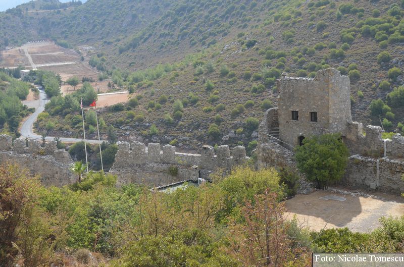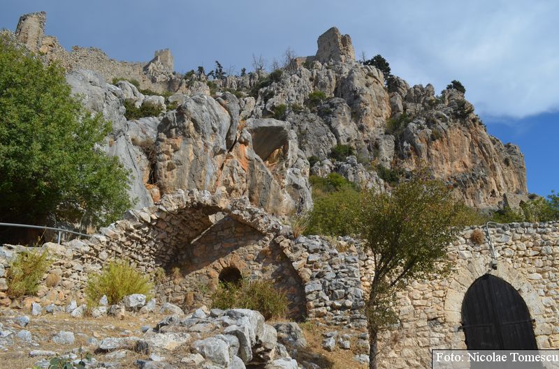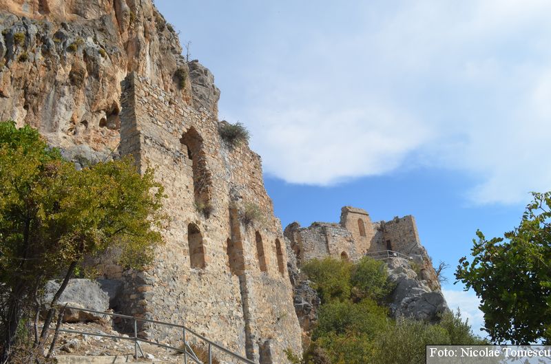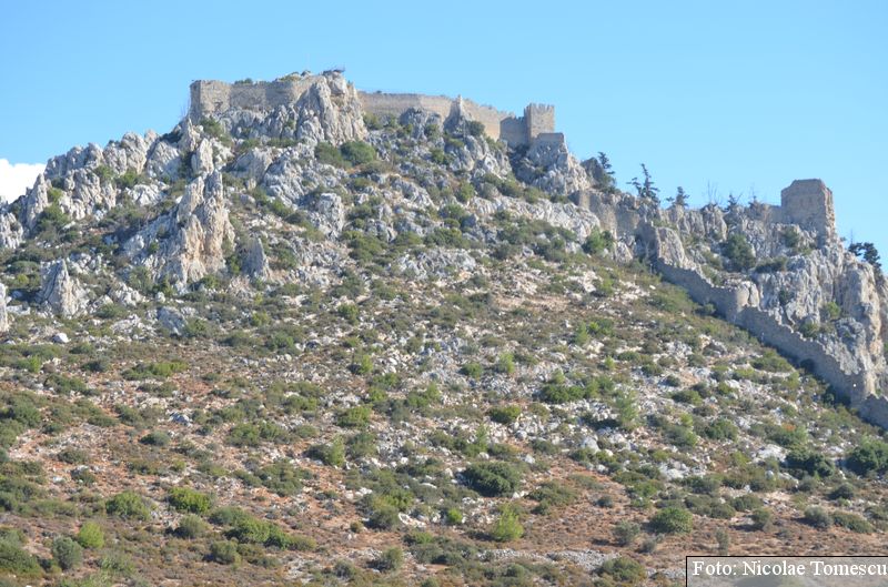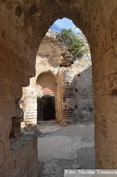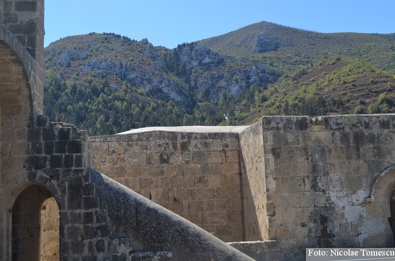 Mai curând, am vrut să descoperim dacă numele altui castel – Sfântul Ilarion[10] – comunică ceva esențial, caracteristic, fundamental din ceea ce aparține trecutului și prezentului. Didymus, vechiul nume[11] al unor stânci, deși nu se remarcă printr-o importanță strategică majoră[12], s-a transformat într-unul dintre cele mai importante castele medievale din bazinul mediteraneean. Când bizantinii au lăsat locul perioadei cruciadelor, insula a fost cucerită de Richard Inimă de Leu[13], care a cedat-o, pe bani, cavalerilor templieri, așa cum ultimii au vândut-o Lusignanilor. Atunci când Cipru a revenit venețienilor, aceștia au consolidat castelele de pe coastă (Kyrenia și Famagusta), dar au neglijat realizările francezilor – care se aflau în vârful munților[14]. Ne gândeam la toate acestea, imediat ce am intrat în Castelul Sfântul Ilarion și a apărut priveliștea Kyreniei, cu orizont larg, văzută de departe și de la înălțime. Mai aproape, turnuri construite în formă de potcoavă, arcade și porți ale amintirilor, ziduri care nu excelează prin grosimea lor, o cisternă, un fel de grădină, scări prin care se ajunge, cu intrare și un tunel mai lung, în altă zonă… ruinele bisericii bizantine, rămasă fără acoperiș, rânduri de zidărie (piatră) legate de brâuri de cărămidă, sala de mese, ruinele unor camere în care se așezase nobilimea, cazarma soldaților… după aceste construcții de inspirație lusigniană, trepte și urcuș anevoios către a treia zonă, Palatele Regale, inclusiv ferestre în stil medieval, turnuri de apărare, cisterne, bucătării, camere ale administratorilor… de la apartamentele regale, traseul către vârf (732 de metri), panorama asupra insulei (se spune că, în zilele senine, pot fi văzuți și munții înzăpeziți ai Turciei), alt traseu care duce la Turnul Prințului Ioan…