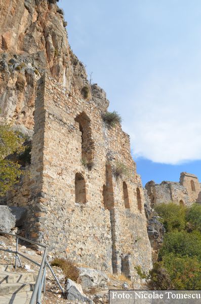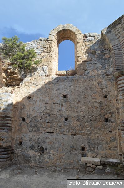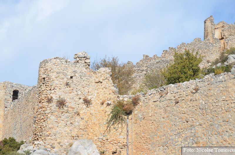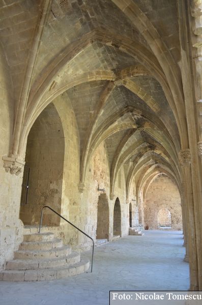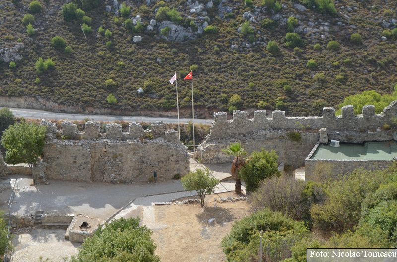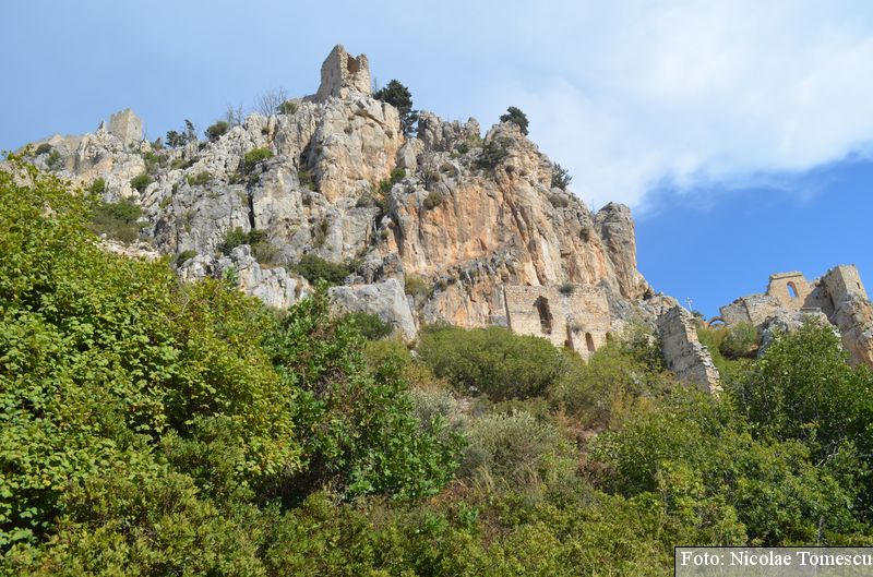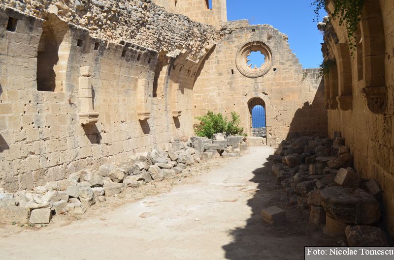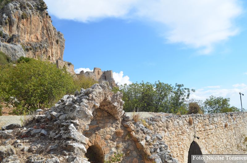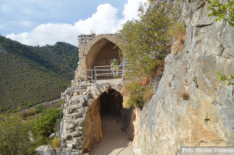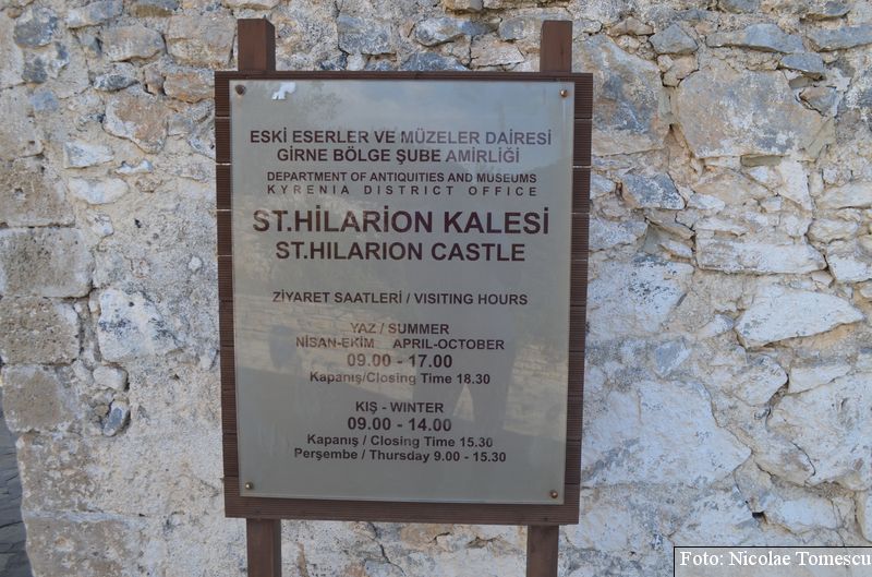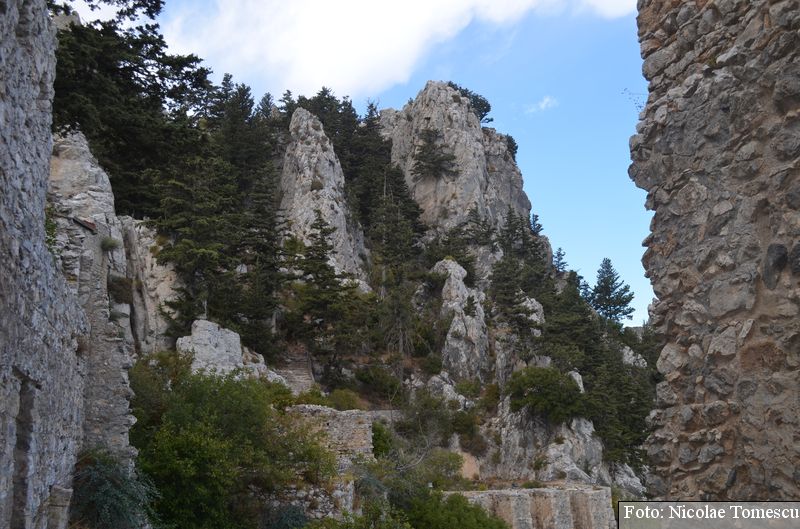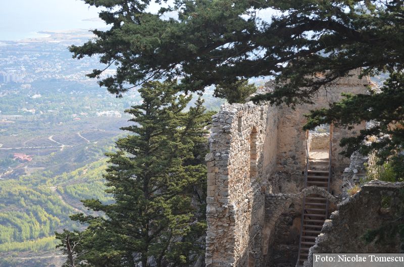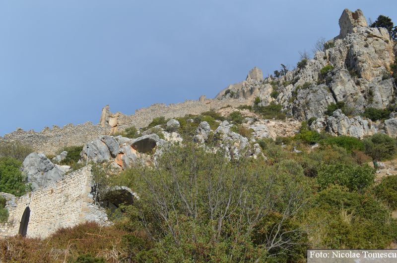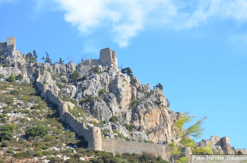 Mai curând, am vrut să descoperim dacă numele altui castel – Sfântul Ilarion[10] – comunică ceva esențial, caracteristic, fundamental din ceea ce aparține trecutului și prezentului. Didymus, vechiul nume[11] al unor stânci, deși nu se remarcă printr-o importanță strategică majoră[12], s-a transformat într-unul dintre cele mai importante castele medievale din bazinul mediteraneean. Când bizantinii au lăsat locul perioadei cruciadelor, insula a fost cucerită de Richard Inimă de Leu[13], care a cedat-o, pe bani, cavalerilor templieri, așa cum ultimii au vândut-o Lusignanilor. Atunci când Cipru a revenit venețienilor, aceștia au consolidat castelele de pe coastă (Kyrenia și Famagusta), dar au neglijat realizările francezilor – care se aflau în vârful munților[14]. Ne gândeam la toate acestea, imediat ce am intrat în Castelul Sfântul Ilarion și a apărut priveliștea Kyreniei, cu orizont larg, văzută de departe și de la înălțime. Mai aproape, turnuri construite în formă de potcoavă, arcade și porți ale amintirilor, ziduri care nu excelează prin grosimea lor, o cisternă, un fel de grădină, scări prin care se ajunge, cu intrare și un tunel mai lung, în altă zonă… ruinele bisericii bizantine, rămasă fără acoperiș, rânduri de zidărie (piatră) legate de brâuri de cărămidă, sala de mese, ruinele unor camere în care se așezase nobilimea, cazarma soldaților… după aceste construcții de inspirație lusigniană, trepte și urcuș anevoios către a treia zonă, Palatele Regale, inclusiv ferestre în stil medieval, turnuri de apărare, cisterne, bucătării, camere ale administratorilor… de la apartamentele regale, traseul către vârf (732 de metri), panorama asupra insulei (se spune că, în zilele senine, pot fi văzuți și munții înzăpeziți ai Turciei), alt traseu care duce la Turnul Prințului Ioan…