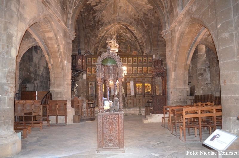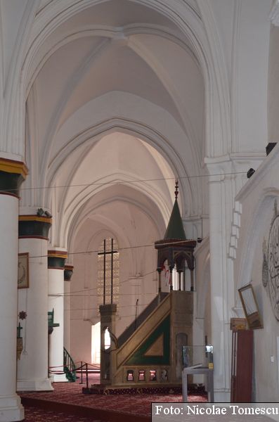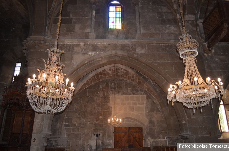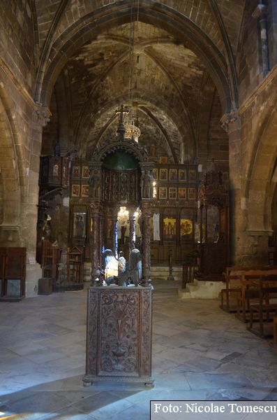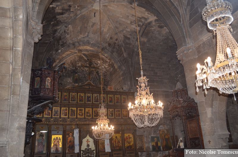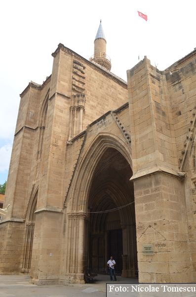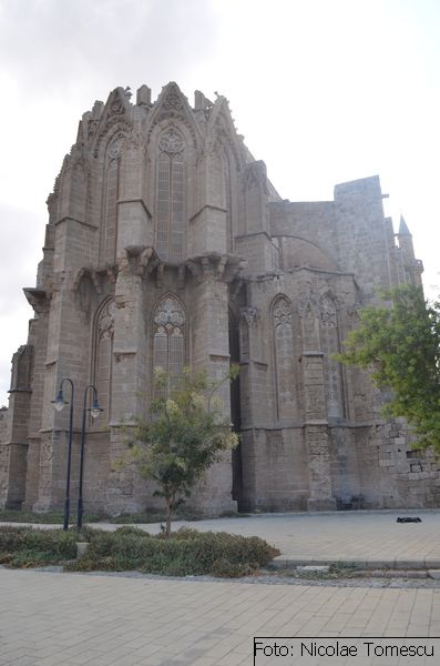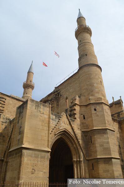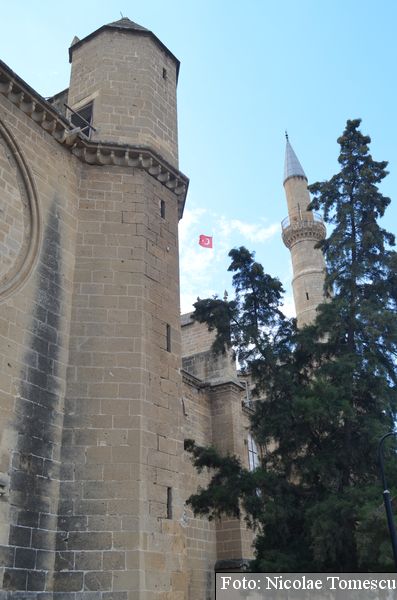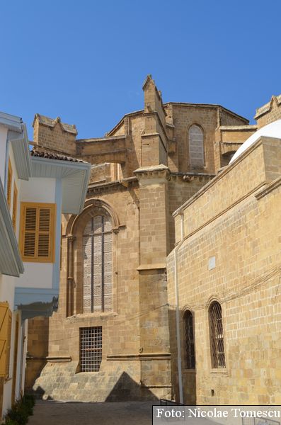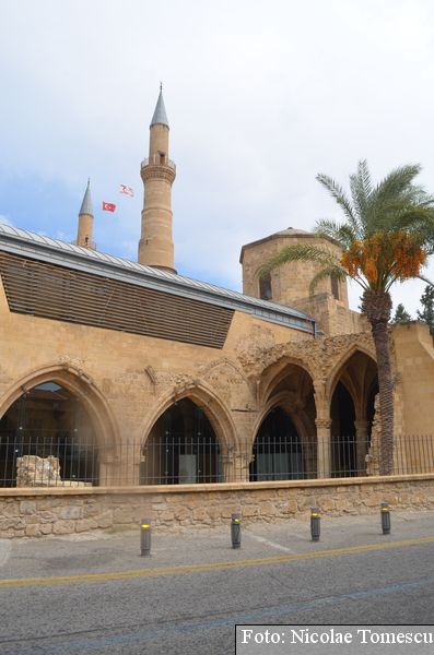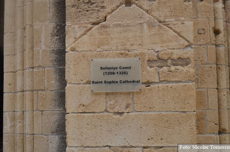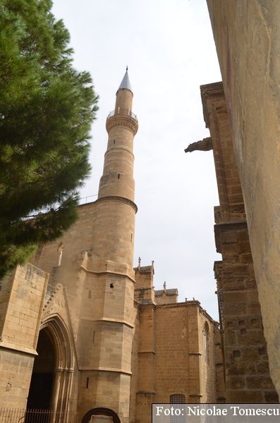 [23] Magnifică atât la exterior cât şi la interior (deşi nu mai există nici urmă de pictură creştină), cu porticuri gotice graţioase, de culoare roz, cu şase vitralii, i s-au ataşat minarete, în obişnuitul gest otoman ulterior cuceririi. Pe străzi se găsesc şi astăzi ghiulele imense din piatră rămase de la asediul din 1570 asupra fortăreţei…