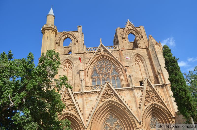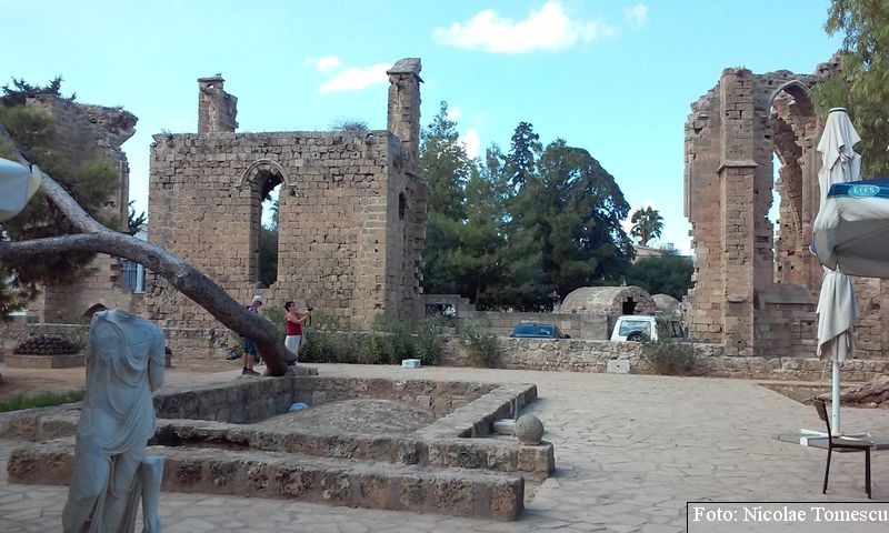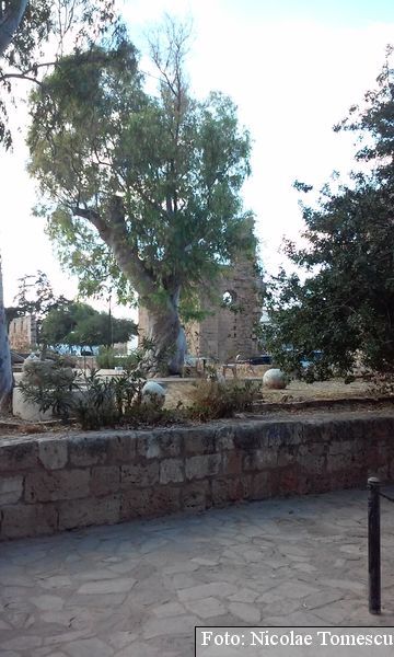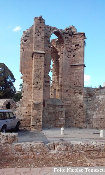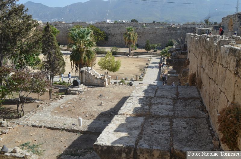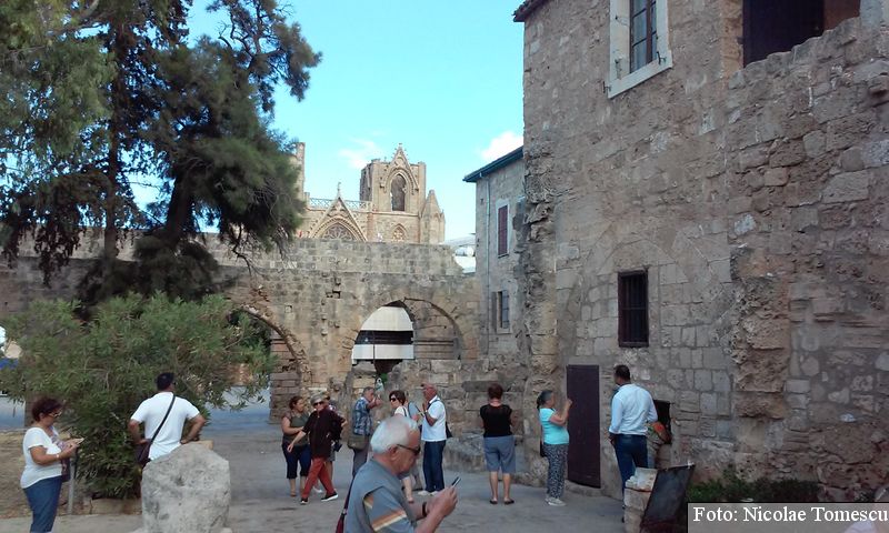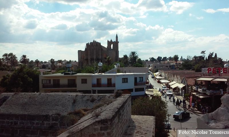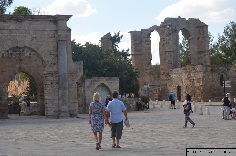 Mașina ne-a lăsat în vecinătatea portului şi a Turnului lui Othello, unul dintre bastioanele cetăţii care dă spre mare, celebru pentru că Shakespeare a plasat acţiunea operei sale în Famagusta. Am admirat portul, marea şi întreaga cetate medievală din care se iveau clădirile în stil gotic, autentice bijuterii arhitectonice printre taverne, mașini, magazine. Inima oraşului fortificat este moscheea Lala Mustafa Paşa, la origine catedrala Sfântul Nicolae[23]. Din Biserica Sfântul Gheorghe al Grecilor a mai rămas doar scheletul exterior; din Sfântul Gheorghe al Latinilor s-a păstrat un perete semicircular. Fosta biserică a Sfinților Petru şi Pavel, devenită moscheea Sinan Paşa, a avut o soartă mai fericită, conservându-și arhitectura. Foarte aproape, Palatul veneţian al Guvernatorului, construit pe locul fostului Palat Regal Lusignan, impresionează prin dimensiunea şi forma pe care le poţi doar intui, deoarece părţile centrale ale palatului au fost complet distruse, păstrându-se numai grandioasele sale ziduri ale faţadei şi curtea din spate. În centru ne dăm întâlnire cu rămăşiţele degradate ale Mănăstirii şi Bisericii Franciscane, băile Ağa Çafer Paşa, fântâna lui Ağa Çafer Paşa[24]…
