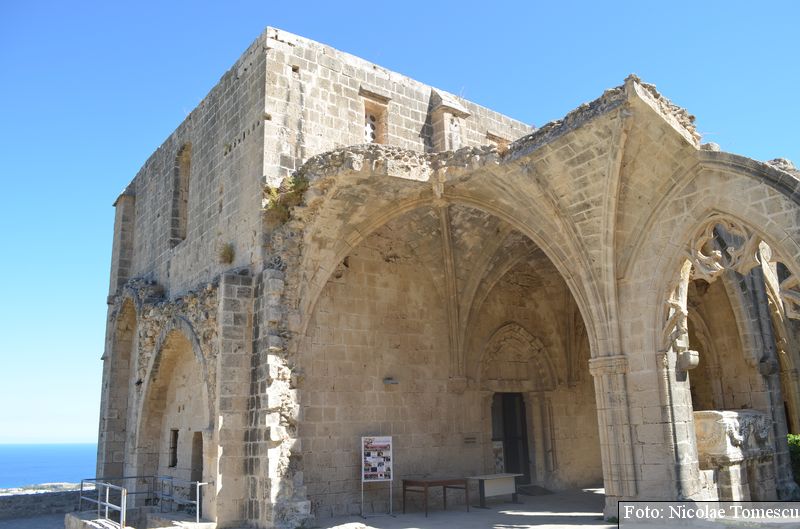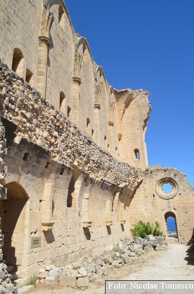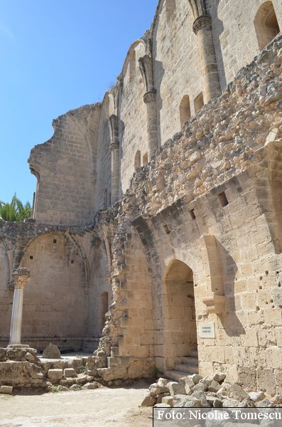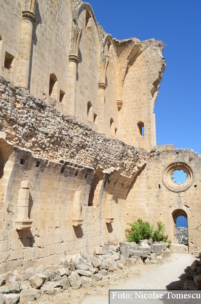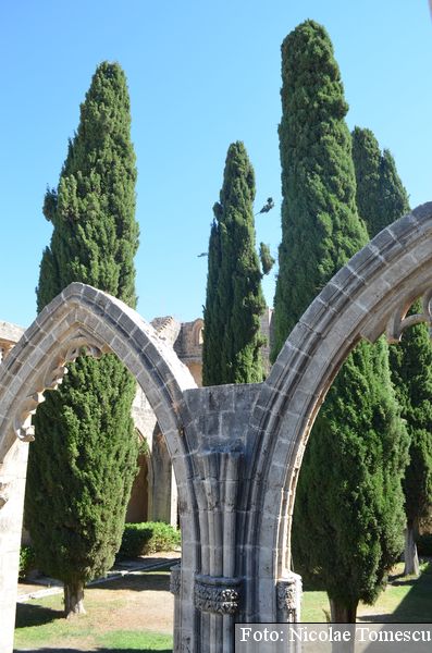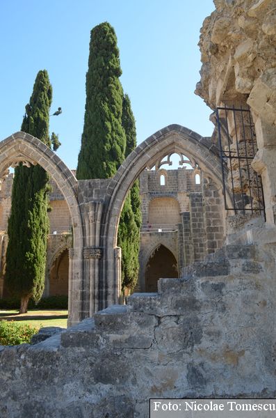 Cei 6 kilometri din Girne până la Bellapais nu pot fi parcurși decât pe jos sau cu taxiul (20 de lire turcești/aproape 7 Euro). Bellapais, satul imortalizat de Lawrence Durrell în scrierile sale, are ca principal punct de atracție Bellapais Abbey. Mănăstirea, așezata într-un cadru natural de poveste, cel mai spectaculos exemplu de arhitectură gotică din Cipru, uimește prin arcadele sale din piatră sculptate cu grație și stil. Denumită Abbey de la Paix (Abația Păcii), a fost înălțată, inițial, între anii 1198-1205. Construcția principală, așa cum poate fi mângâiată cu privirea și în prezent, datează din secolul al XIII-lea, desemnând opera călugarilor franciscani din ordinul Sfântul Augustin; adăugirile aparțin secolului următor. Biserica greco-ortodoxă închinată Fecioarei Maria, îmbrăcată în alb, a inspirat și denumirea Blanche Abbey…