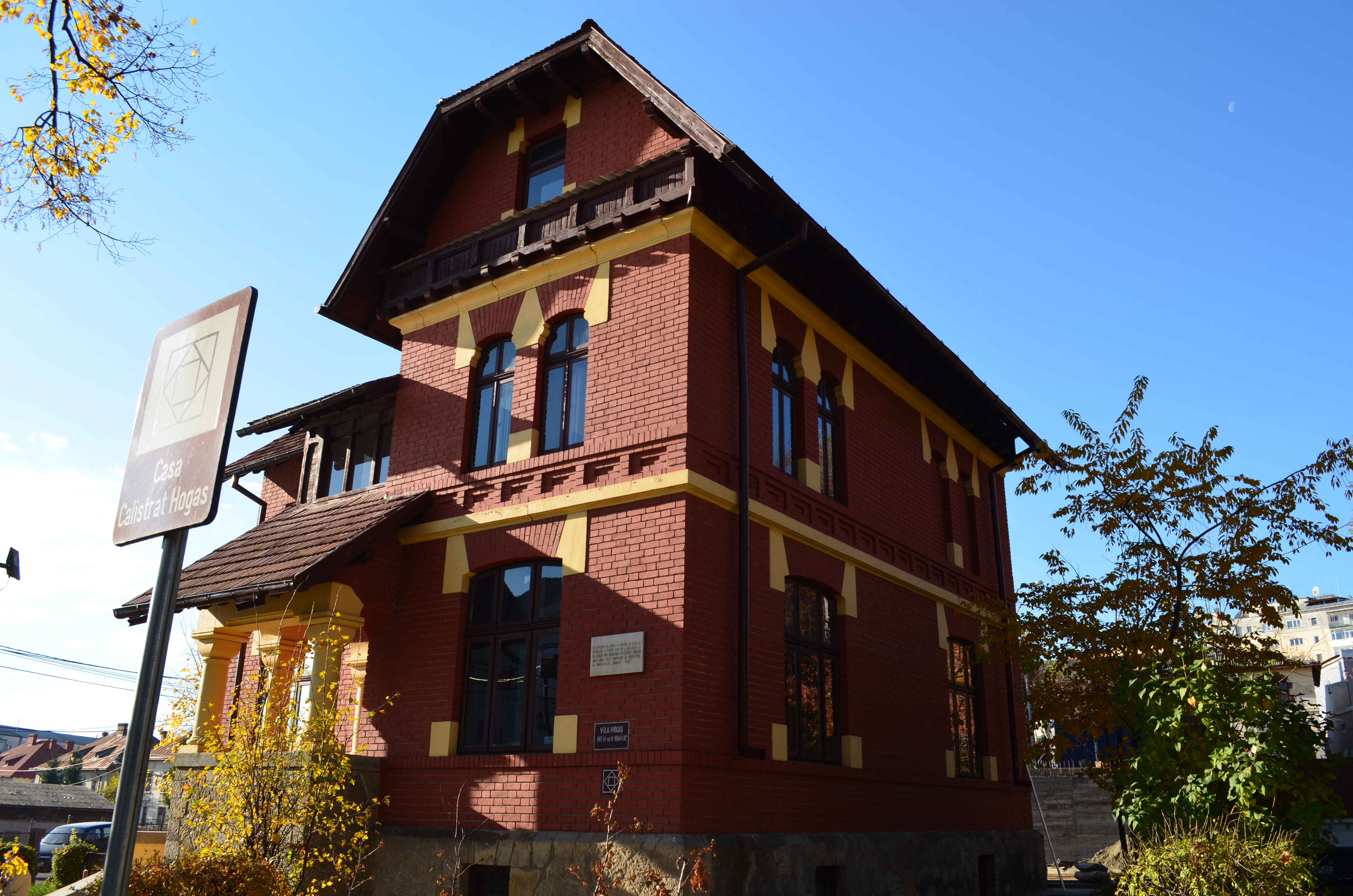 [9] În urma unei anevoioase călătorii la Iași, pentru un control medical, scriitorul a hotărât să poposească pentru câteva zile în Roman, la una din fiicele sale, întrucât găsea mai multă liniște decât acasă, la Piatra Neamț. Precum în cazul Iașilor, alături i-a stat mezina, Sidonia. Mărturiile acesteia conturează asfințitul septuagenarului literator: „În a treia săptămână de când ne aflam la Roman, într-o zi de vineri /25 august 1917/, îl găsesc pe tata stând în ogradă, departe de ceilalți, cu privirea pierdută în asfințitul roșu al soarelui. «Mi-i urât. Să-mi dai volumul meu, că vreau să mai corectez ceva». Îi dădui În Munții Neamțului şi în adevăr că începu a-l corecta. Sâmbătă, 26 august şi duminică, 27 august, fu atât de liniștit, că nimeni în lume nu m-ar fi putut convinge de sfârșitul de după câteva ore. /…/ În lipsa mea, spuse surorii mele: «Cleopatră, a fost dat să mor în casa ta; la Piatra /unde locuiau Elena, soția şi o altă fiică, Cecilia/, să nu daţi de ştire de asta; să mă îngropați cât se poate de simplu şi numai cu un singur preot». Liniștea cea mare venea pe nesimțite, dar sigur. Într-un târziu șopti: «Doamne, cu ce am greșit de mă chinui aşa?». Spre ziuă îmi spuse într-un pripit şi prea ușor suflu: «Sidonie, să mă duci la Piatră!». Fură ultimele cuvinte ce mai pronunță. Respirația îi era liniștită şi ușoară, din ce în ce mai ușoară şi mai liniștită. Iată dimineața de 28 august /…/ E ora opt fără un sfert. Îşi înălță capul. Privi pe rând, pătrunzător şi sigur, încă o dată spre zările de azur, apoi fruntea … pentru prima şi ultima oară se plecă; o sprijini cu mâna mea dreaptă, o clipă în urmă simții că se lasă cu încredere; un ușor suflu; mâna mea stângă în dreptul inimii simți ca o prea ușoară zbatere de puișor în găoace, apoi … nimic” (spicuiri din volumul Tataia. Amintiri din viaţa lui Calistrat Hogaș, de Sidonia C. Hogaș).