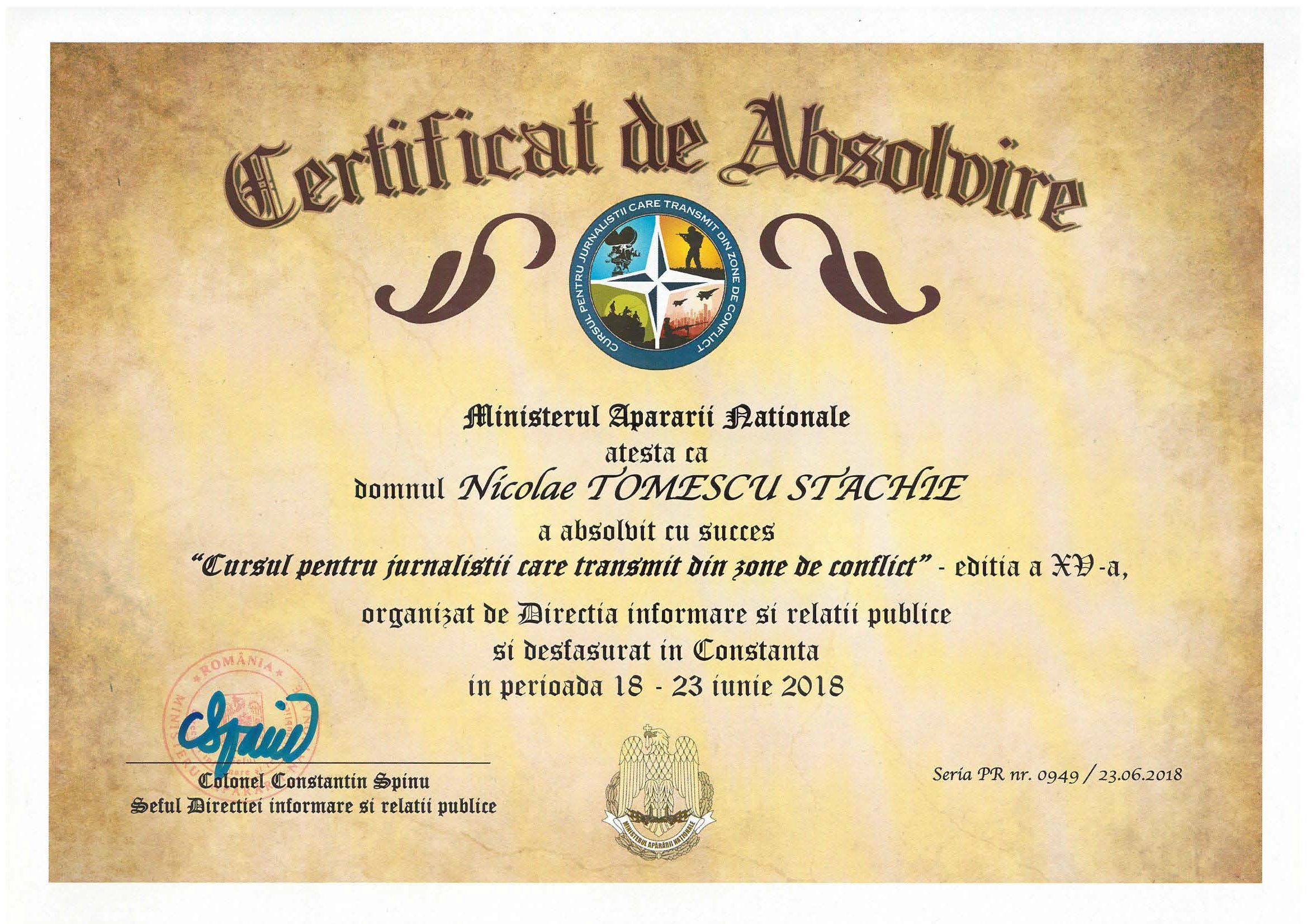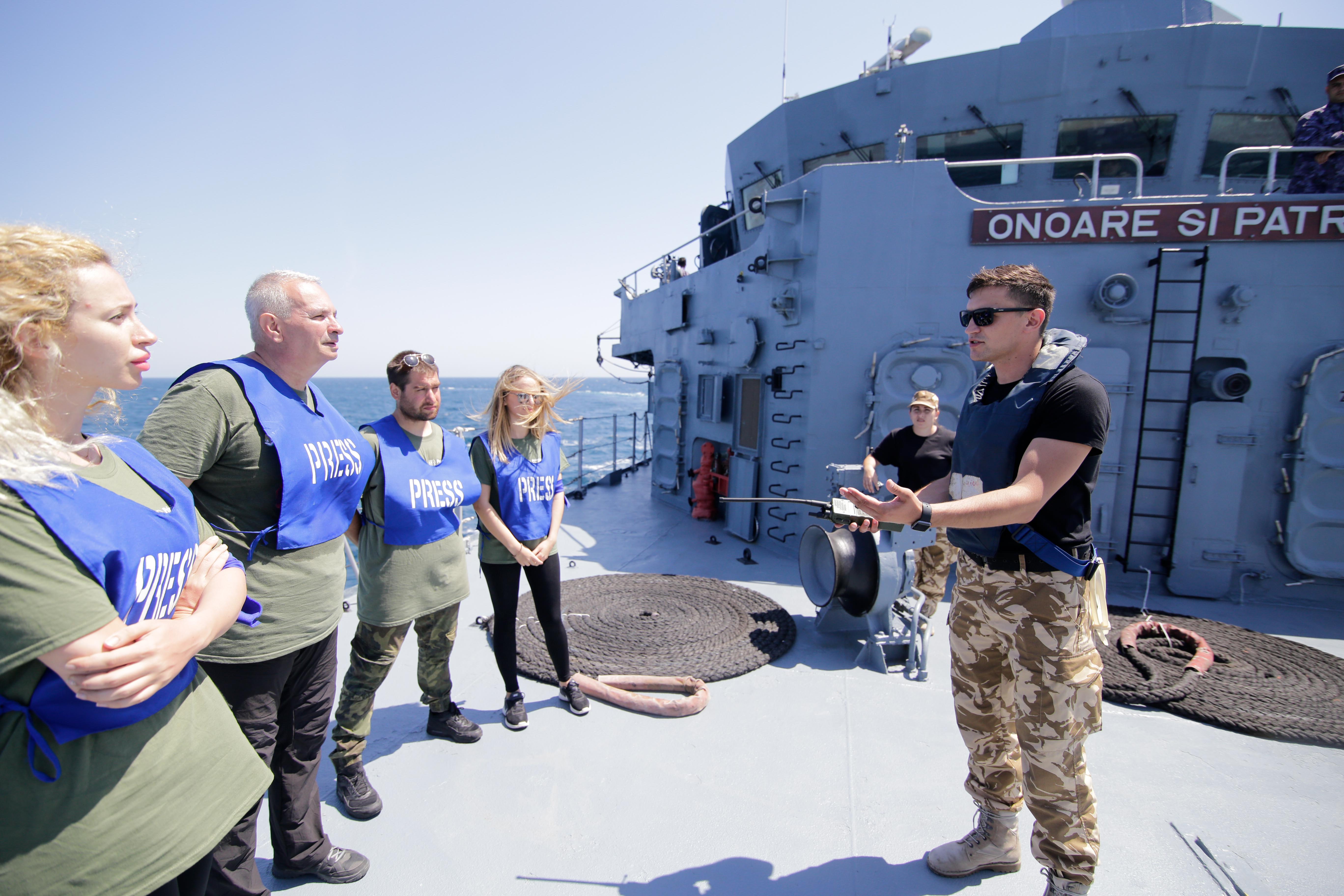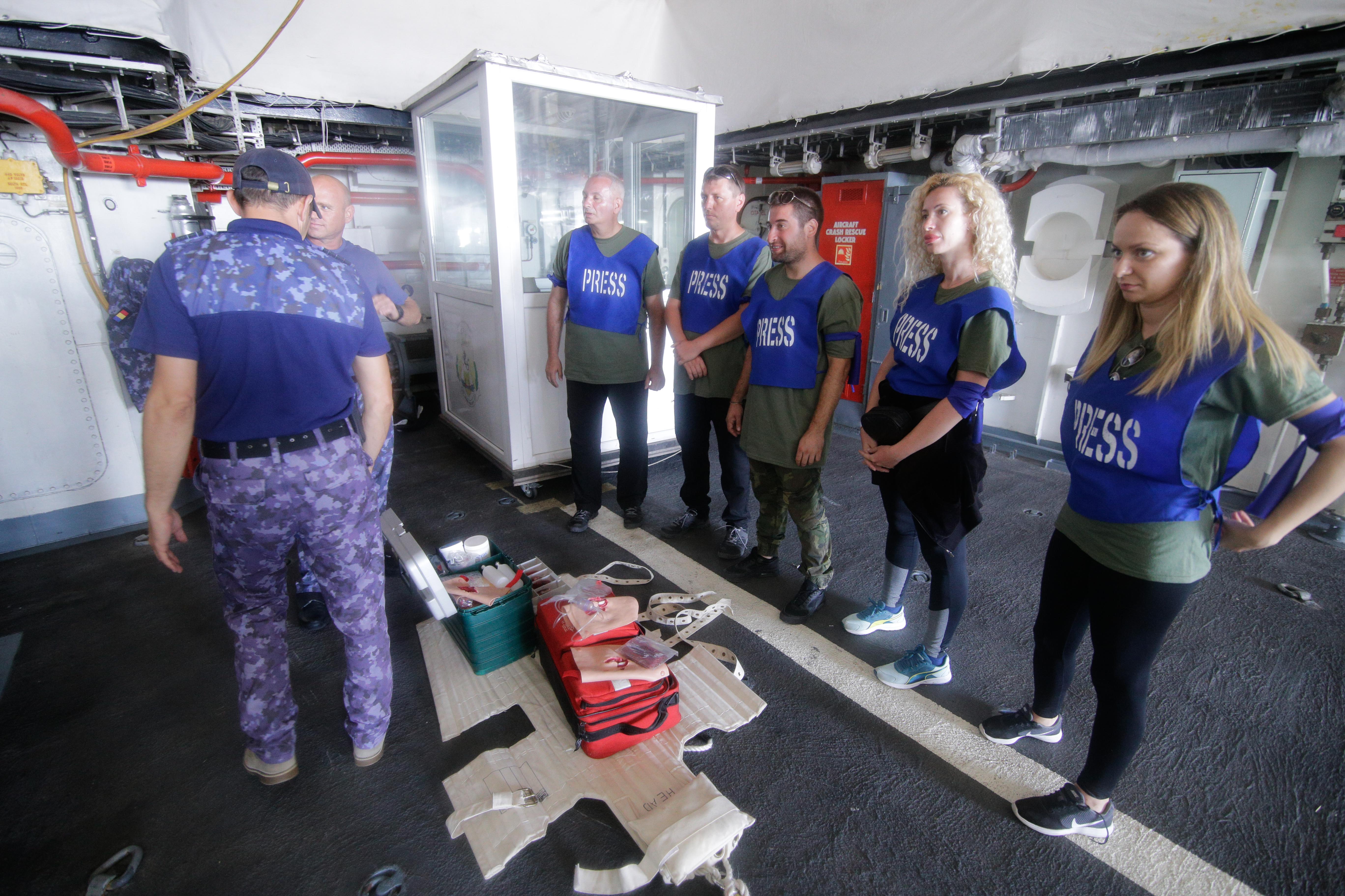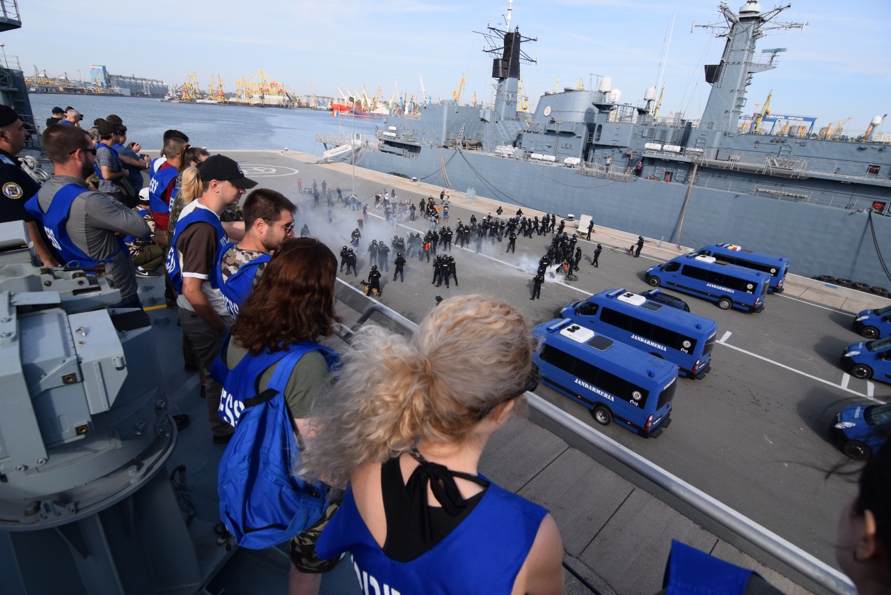 Ministerul Apărării Naţionale a organizat, prin Direcţia informare şi relaţii publice (colonel Constantin Spînu, coordonator DIRP a MapN; colonel Renato Nadolu, șeful secției informare internă, comunicare online și instruire de specialitate din cadrul DIRP; locotenent-colonel Monica Szlavik, șefa compartimentului de instruire de specialitate din cadrul DIRP), cu sprijinul Statului Major al Forţelor Navale şi Statului Major al Forţelor Aeriene, Cursul pentru jurnaliştii care transmit din zone de conflict, ediţia a XV-a/Constanța, 18-22 iunie 2018.