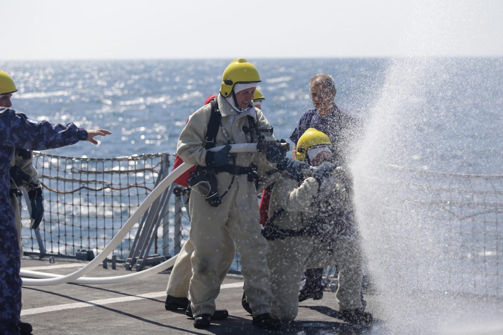 [2] Flota militară maritimă a României operează și pe mările și pe oceanele lumii – în cadrul operațiunilor NATO… După integrarea României în Alianța Nord-Atlantică (anul 2004), încadrându-se procesului de reformă a Armatei României, având principala finalitate a creării interoperabilității cu forțele armate ale statelor membre ale NATO, Statul Major al Forțelor Navale a transformat Marina Militară în prima categorie de forțe complet profesionalizată (în paranteză fie spus, eu însumi sunt în măsură „să depun mărturie” asupra gradului său de profesionalizare, prin raportare la un fapt de însemnătate din viața mea recentă – Cursul pentru jurnaliști care transmit din zone de conflict (Constanța, 18-23 iunie a.c.)…