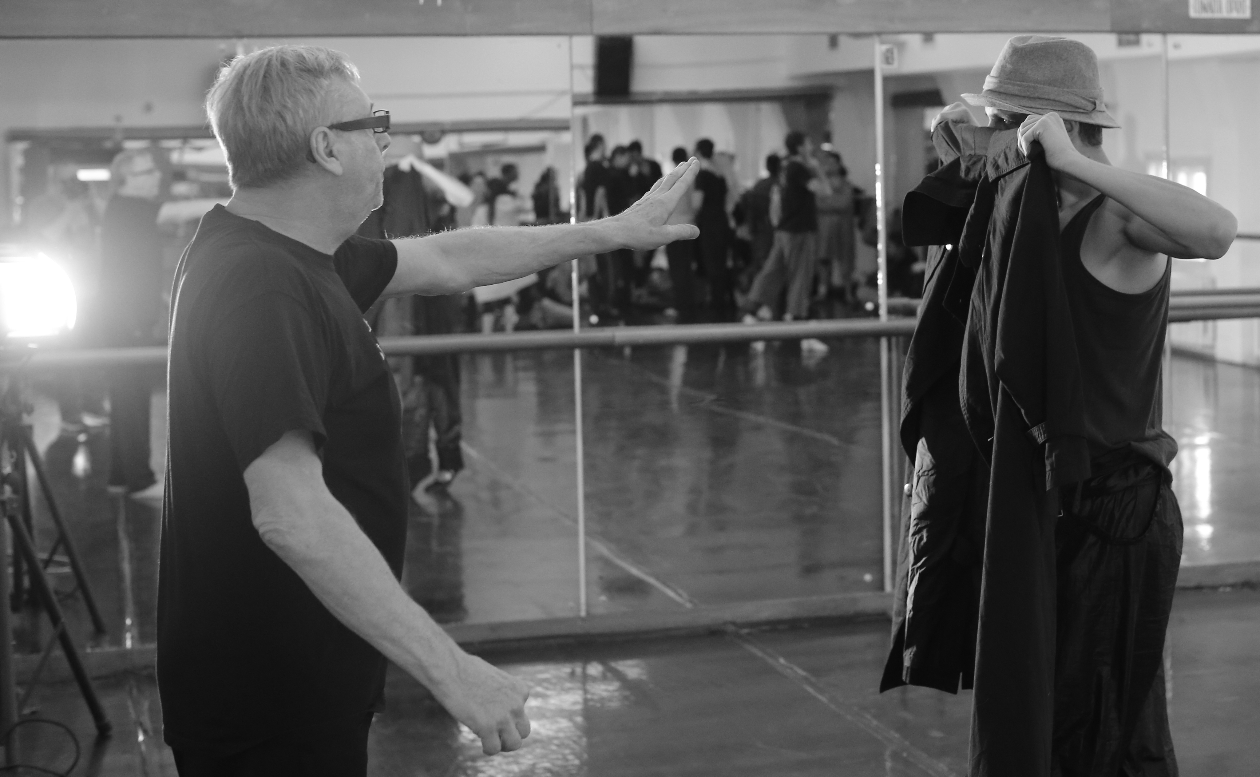 Gigi Căciuleanu: Primul spectacol pe care l-am creat în străinătate fiind de sine stătător, a fost fost tot la compania Pinei Bausch, pentru că înainte mai prezentaserăm acele Nocturne cu doamna Miriam, eram noi doi, plecam la Edinburgh, la festival, ceea ce pe vremea aceea era foarte rar ca nişte români să ajungă acolo şi prin alte ţări, am fost în Chile, chiar în Argentina, în alte ţări. Chiar după primul episod cu ceaţa, acea companie era în fond ultima clasă a unei Universităţi de Artă, unde erau tot felul de artişti, nu numai dansatori, dar si muzicieni, fotografi, actori, iar Pina Bausch conducea acea ultima clasă care era considerată şi o companie. În fiecare zi aproape arătam ceva în micul teatru, care s-a aflat tot acolo pe loc şi in care ne confruntam: Pina arăta ce făcuse ea, eu arătam ce făcusem eu. Şi e foarte frumos că odată, primul lucru pe care l-am făcut, am luat din secvenţele pe care le lucrasem cu Miriam Răducanu, un joben, aveam un joben mare şi am transformat acel dans, l-am refăcut în alt fel şi l-am arătat pe acea scenă, acel lucru a fost prima ieşire în public sau prima intrare în public. După aceea, primesc o scrisoare de la mama, (scrisorile treceau greu şi erau filtrate şi nu se putea scrie orice), mama lucra la Institutul de Cercetări Alimentare ca documentarist şi trebuia să meargă foarte mult pe jos, de la tramvai sau de la troleibuz până acolo, nu avea maşină, mama era şi ea poetă, deci îi plăcea sa meargă pe jos, si era iarnă, era zăpadă şi mama umbla prin acea întindere albă şi, deodată m-a văzut foarte mare, tot printr-un fel de pâclă care se contopea cu zăpada.. M-a văzut aşa ca o umbră mare cu un joben în mână, ea nu ştia ce să facă. Într-ul fel m-a confortat acea scrisoare, pentru că mi-am dat seama că legăturile nu sunt pierdute. Nu ştiu prin ce mijloace s-a transmis această imagine mamei, dar tocmai atunci, deci, întrebarea dumneavoastră care poate era pur jurnalistică, pe mine m-a răscolit, pentru că fost prima oară, când am apărut nu numai în faţa unui public în străinătate, dar, în acelaşi timp, apăream pe undeva, pe un câmp de zăpadă în România.