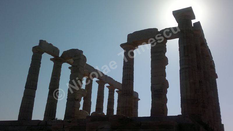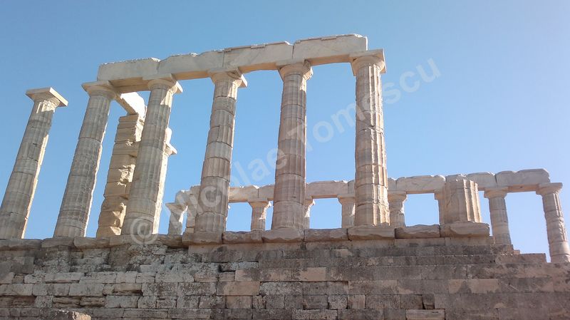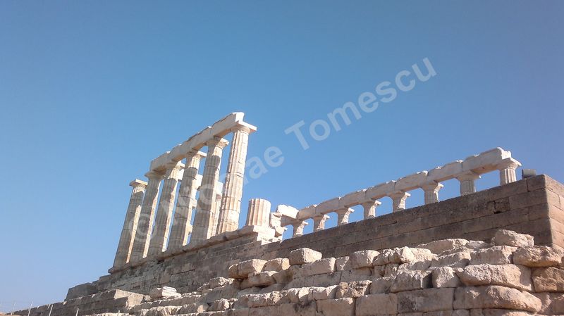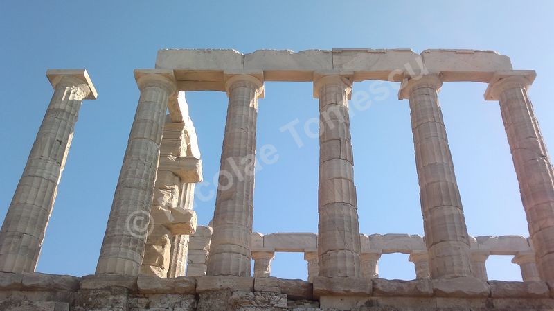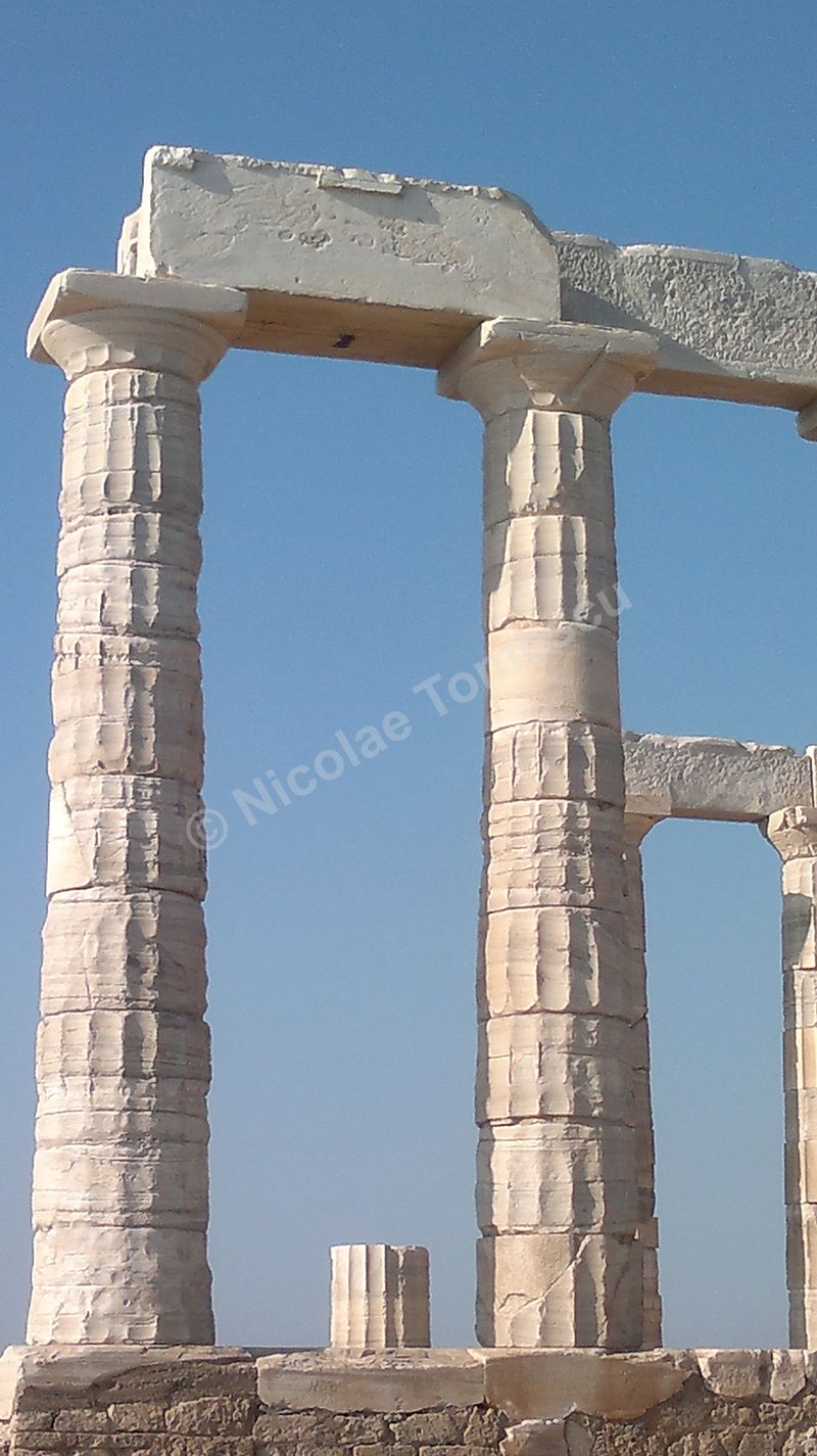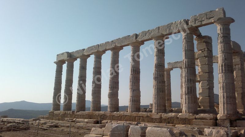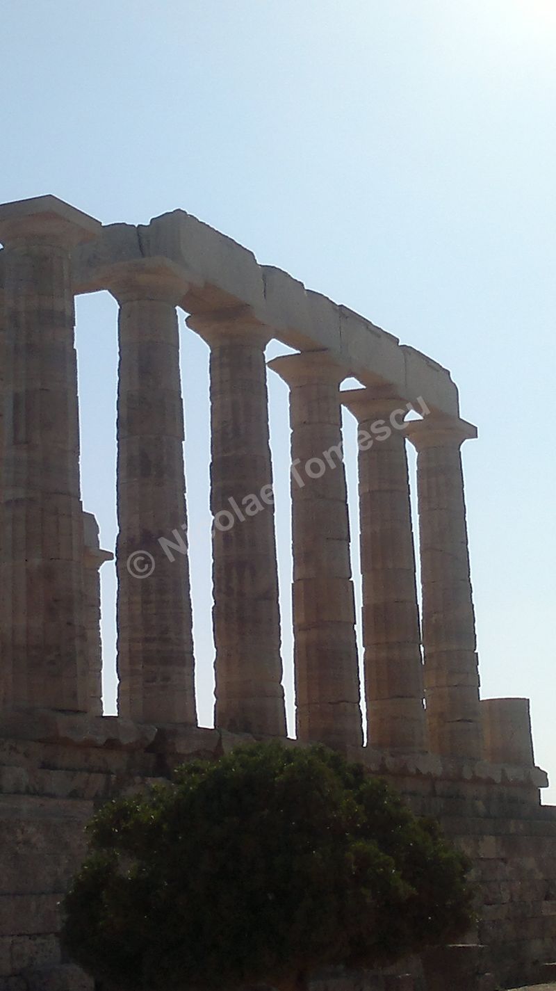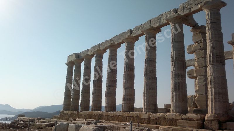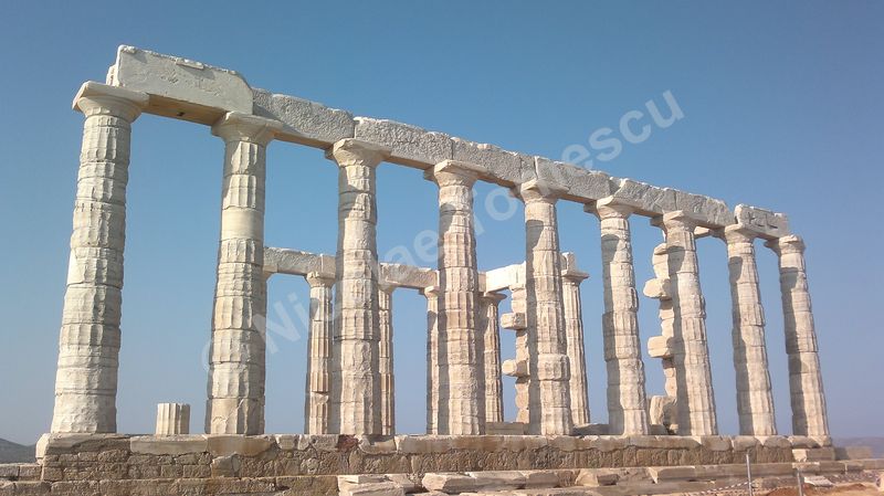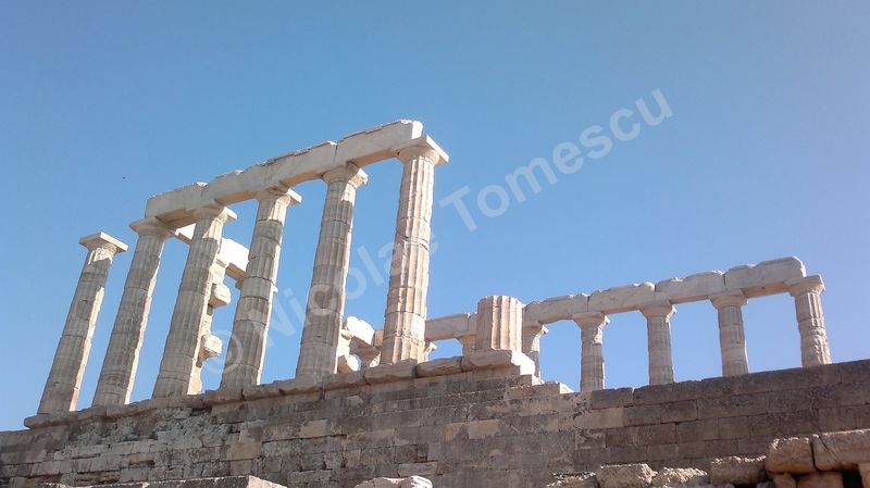 După tradiția biblică, piatra simbolizează înțelepciunea, în virtutea caracterului său imuabil; ea este, adeseori, asociată apei. Eu însumi tind să le asociez… Mă ajută și faptul că Atena, răsfățată cu plaje care alcătuiesc, pur și simplu, intrarea în oraș, se află la mică distanță de insule la care poți ajunge cu vaporul. Prefer autobuzul și, după ce mă contopesc și cu ideea că voi ajunge pe nisipul Voulei, mă îndepărtez de Atena (70 de km) de-a lungul coastei, către sud. Așteaptă un templu înălțat pe cei 60 de metri ai promontoriului Akra Sounion… Poseidon, zeul mărilor și al pământurilor care se zguduie, simbol al apelor primordiale, de jos, unde viața ia naștere într-un chip tumultos, încarnează forțe elementare și încă neterminate ale unei naturi aflate în căutarea formelor solide și durabile. Apropiindu-mă de Akra Sounion, îmi imaginez o vârstă de aur idilică, un vast continent pierdut în adâncuri, o mare putere imperială distrusă, peste noapte, de un cataclism. Atlantida, afirmase Platon, i-a revenit lui Poseidon; zeul a întâlnit o muritoare, Cleito, pe care a luat-o de soție și i-a fortificat locuința de pe deal cu întărituri inelare concentrice (două de pământ și trei de apă); atlanții, ca descendenți ai lui Poseidon, au inclus inelele în orașul pe care l-au întemeiat pe dealul lui Cleito, de jur-împrejur; chiar pe înălțime au ridicat reședința regală și, în mijlocul acesteia, Templul lui Poseidon. Vai, nicio legătură cu Akra Sounion! Marele filosof a situat Atlantida dincolo de Coloanele lui Hercule; este posibil ca erupția de pe Thera să fi grăbit și căderea Cretei minoice… Perioada de datare a templului de la Sounion este 444 î. Hr., decorul privește promontoriul cu panoramă la Marea Egee… Unul dintre visele mele se destramă… Mai mult, pe drumul de întoarcere, cu toată frumusețea priveliștii, pișcă punctul de vedere etic al lui Paul Diel, cel care a judecat cu severitate tipul de comportament simbolizat de Poseidon: zeul ar trăda orice efort de spiritualizare, ar legaliza o formă de corupere, el care dirijează legalitatea ce ține în frâu perversa satisfacere a dorinței, banalizarea, stricarea.