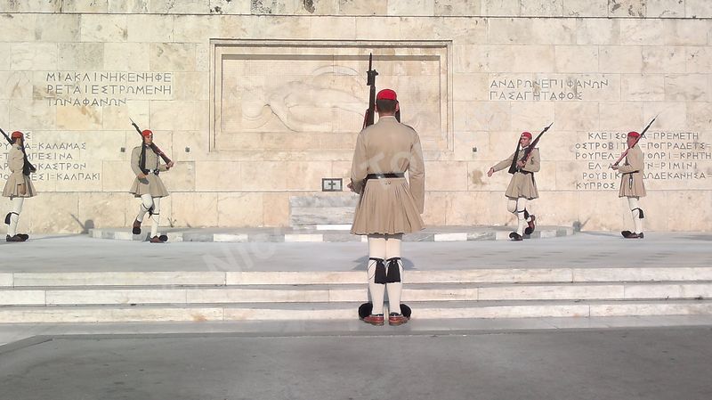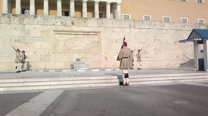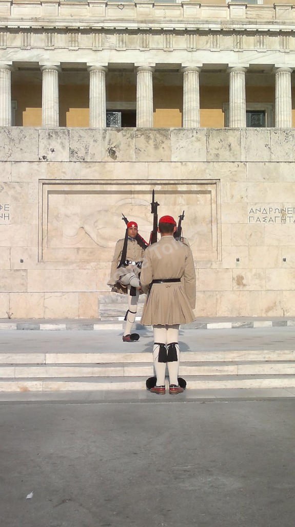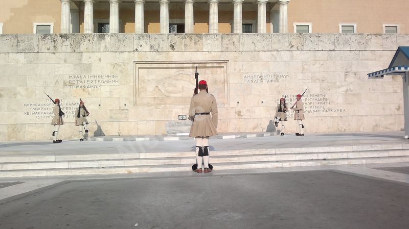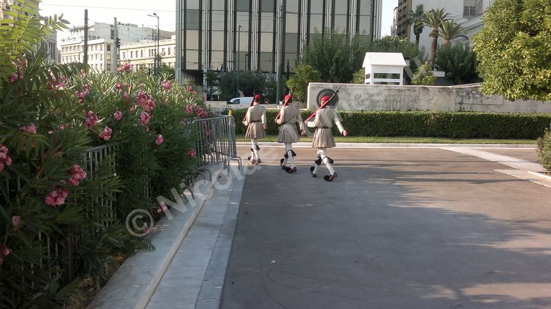 Includ aici Vassilikos Kipos sau Grădinile Regale (redenumite Grădinile Naționale, după abolirea monarhiei); parcul, de 15,5 hectare, începe de sub clădirea Parlamentului, aflată, la rându-i, în relație cu piața Sintagma și continuă spre sud, către Zappeion; sunt evidente și câteva ruine antice – coloane, capitolii, mozaicuri, acest lucru fiind valabil și dincolo de parc… Am înțeles ce înseamnă transmiterea continuă a unui conținut cultural; memorie și idee, amintire a ceea ce a fost, alături de datoria de a transmite mai departe (inclusiv turiștilor). În fața Parlamentului elen, doi gardieni de serviciu schimbă poziţiile lor la fiecare 20 de minute și rămân complet nemişcați până la următorul ritual. Din oră în oră, Evzones (divizie specializată în ceremonial, alcătuită din voluntari infanteriști, artileriști, ai unităţilor de blindate și Corpului de armată, cu îmbrăcăminte tradiţională – în special fustanella), efectuează ceremonia elaborată de schimbare a gărzii, un marș în care mișcările firești alternează cu altele, stilizate. Între Sintagma și Omonia, Universitatea Națională Kapodistrian face parte din așa-numita Trilogie Neo-clasică – Academia, Universitatea și Biblioteca.