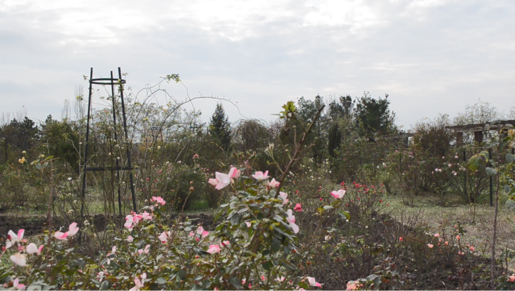 Repet ceea ce am menționat în „Jurnalul de călătorie”: realitatea tomnatică nu poate fi asemuită valului spectaculos[5] de înflorire (de aici, și „datoria” de (re)veni pentru filmări de primăvară); totodată, parfumul – ca suflet al trandafirilor – nu apare la radio sau televiziune; dar să nu transformăm cele două impedimente în obsesii, panorama se înlănțuie în priviri, încântarea „culege” imagini și idei (înfățișate de gazda noastră)…