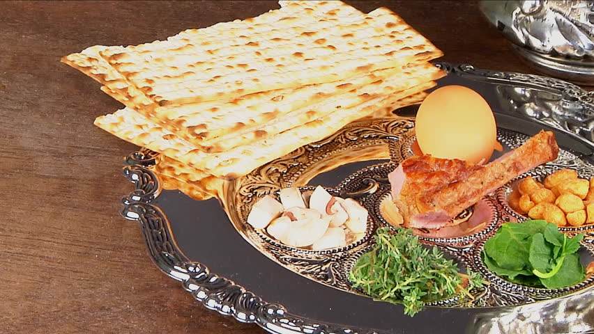 [12] Charoset – un amestec dulceag de fructe şi arahide; karpas – o legumă care poate fi înlocuită, pe platou, cu cartoful fiert; zeroa – un ciolan de miel, ca simbol al mielului jertfit de Paști pe timpul când exista Templul (de obicei, se substituie cu o aripă de pui); beitzah – un ou fiert care simbolizează Haggigah (sacrificiul solemn săvârșit în Templu)… Alimentele enumerate au rol simbolic, masa propriu-zisă conţine bucate fără număr şi gustoase