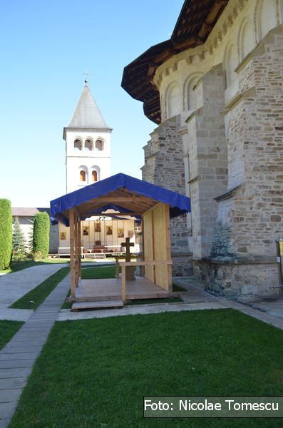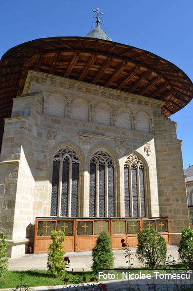 [31] Fiind executată de fraţii Mihai şi Gavriil Moroşan, cei care pictaseră și paraclisul mănăstirii, cu hramul Sfinții Apostoli Petru și Pavel, între anii 1979-1983…