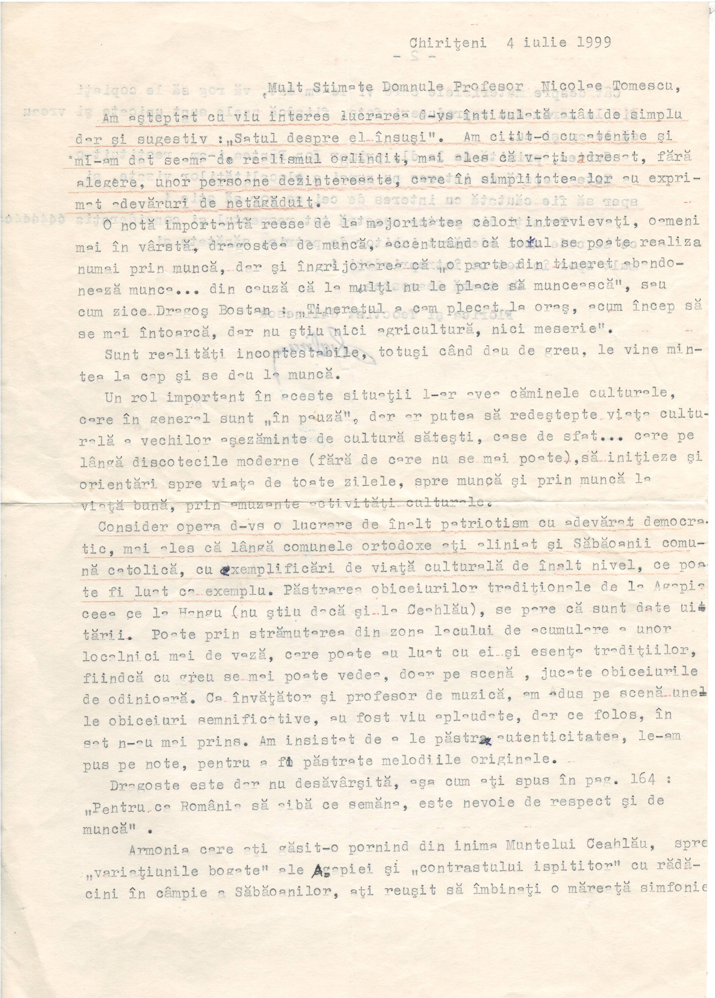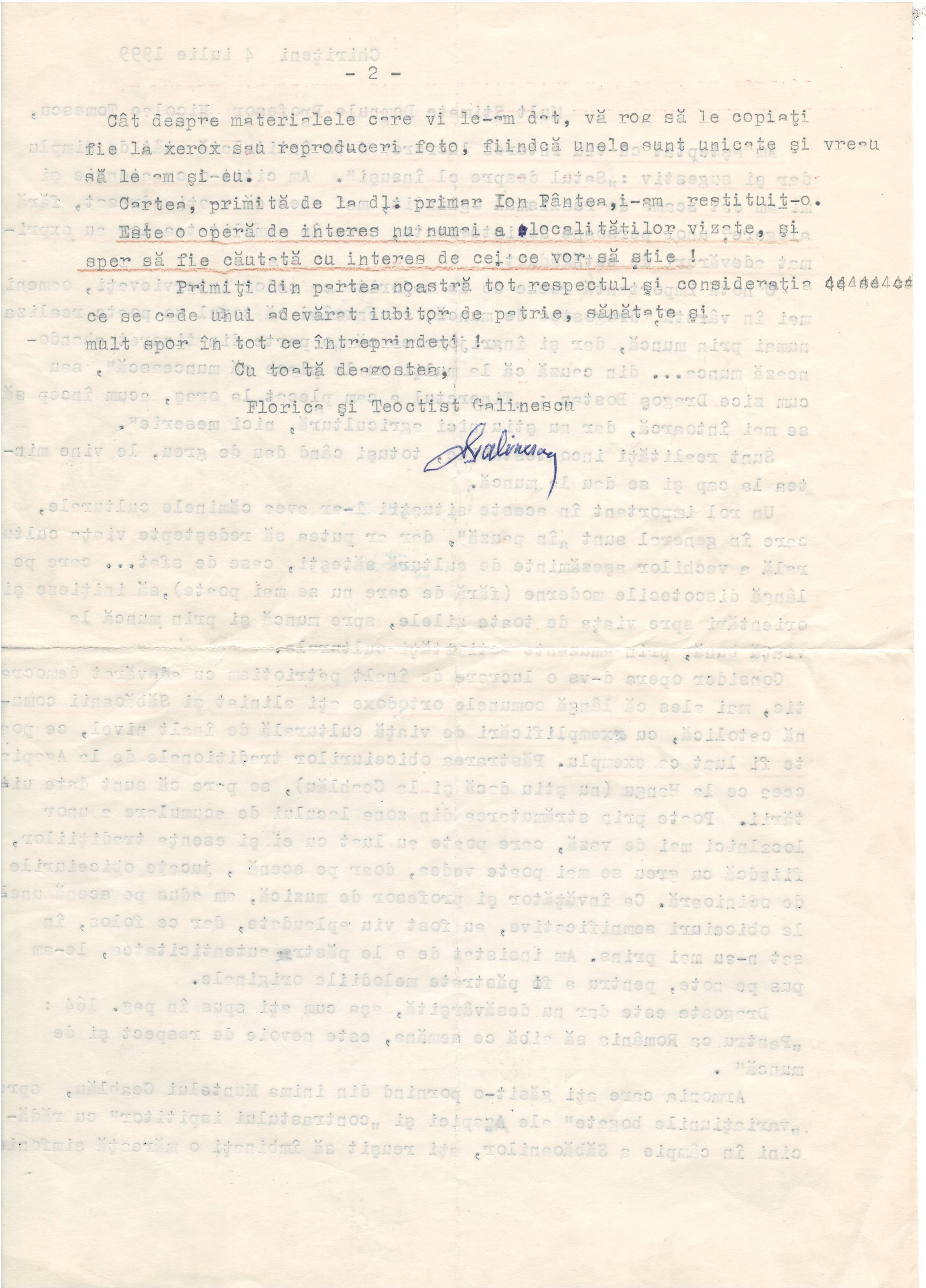 L-am cunoscut în 1997 și, imediat (în 1998) l-am recunoscut ca personaj al cărții Satul despre el însuși[10], din care xerocopiez paginile care îl privesc pe Teoctist Galinescu: